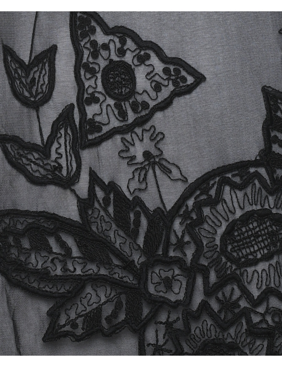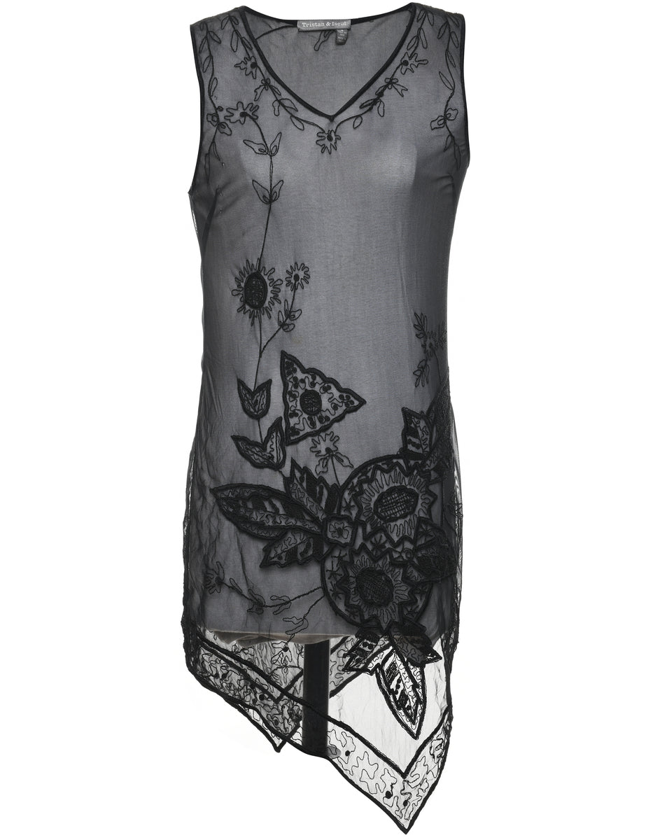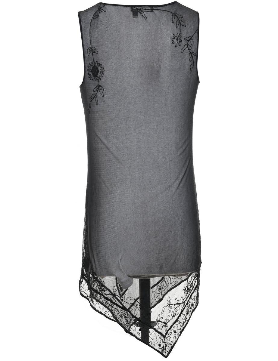 Sheer black 1990s slip dress with embroidery.