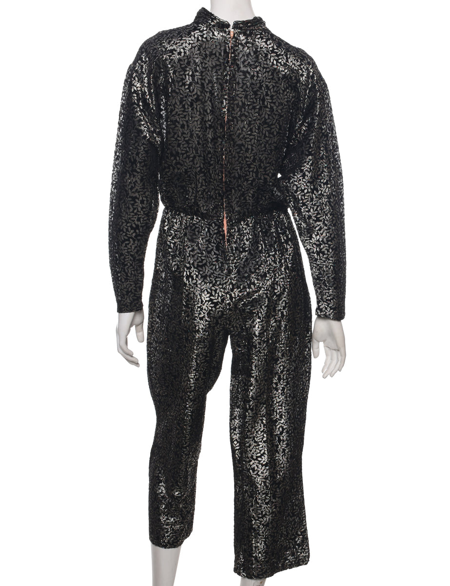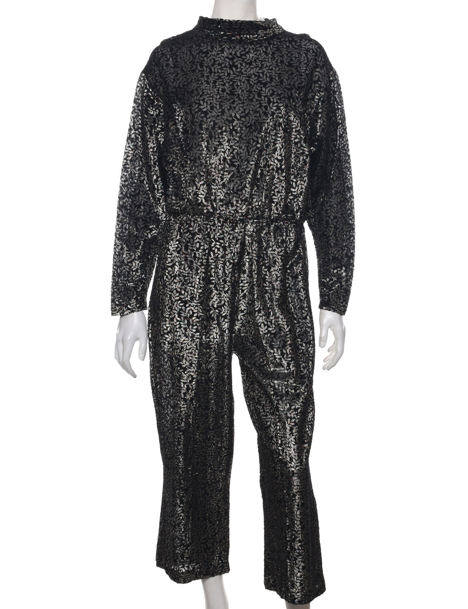 Long sleeved jumpsuit. Comes in black with built in shoulder pads.