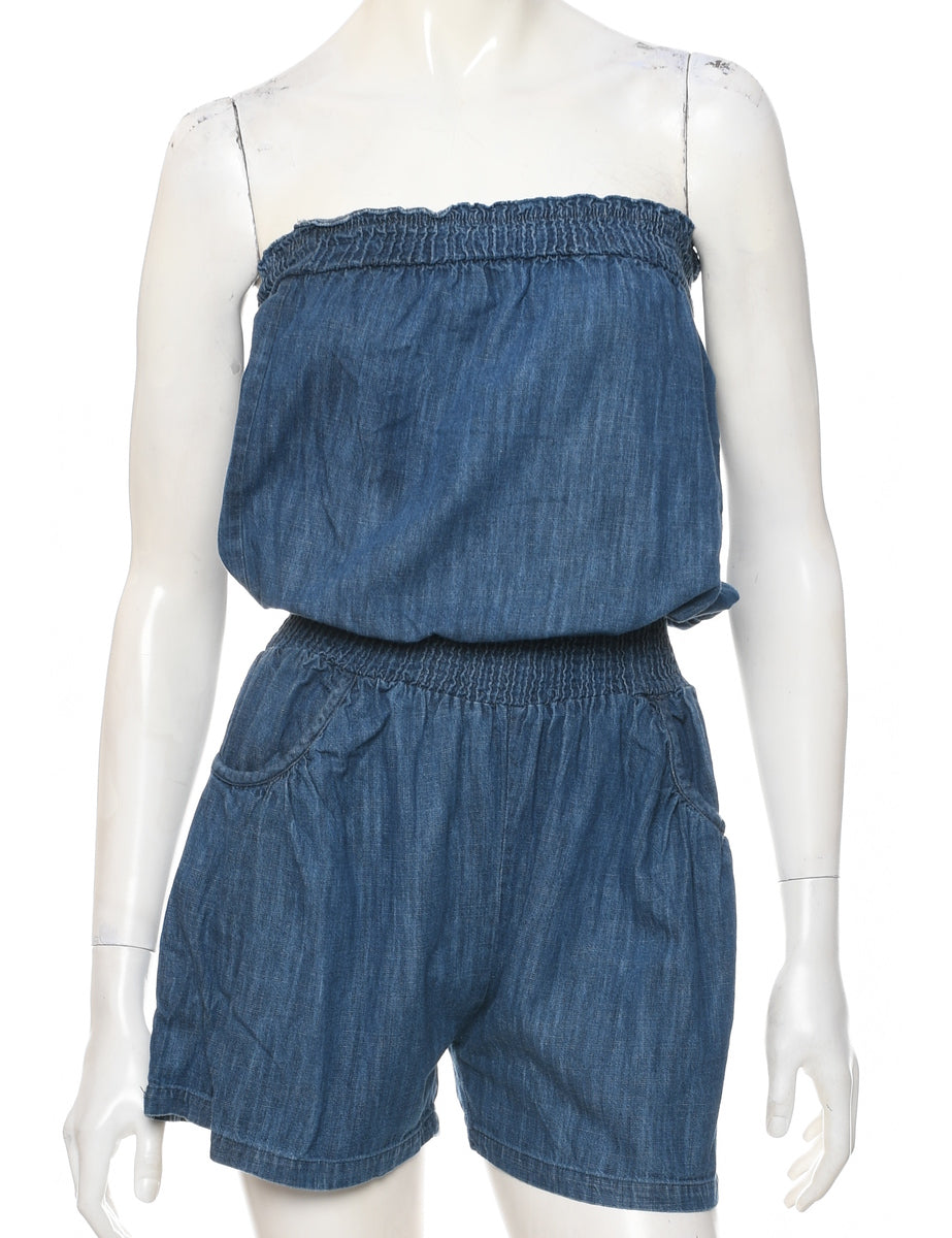 Strapless playsuit. Comes in medium wash with an elasticized waist.