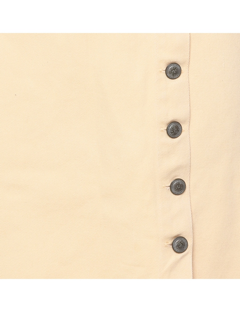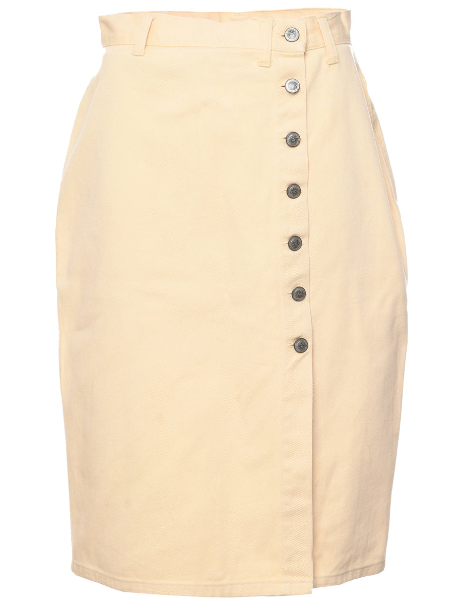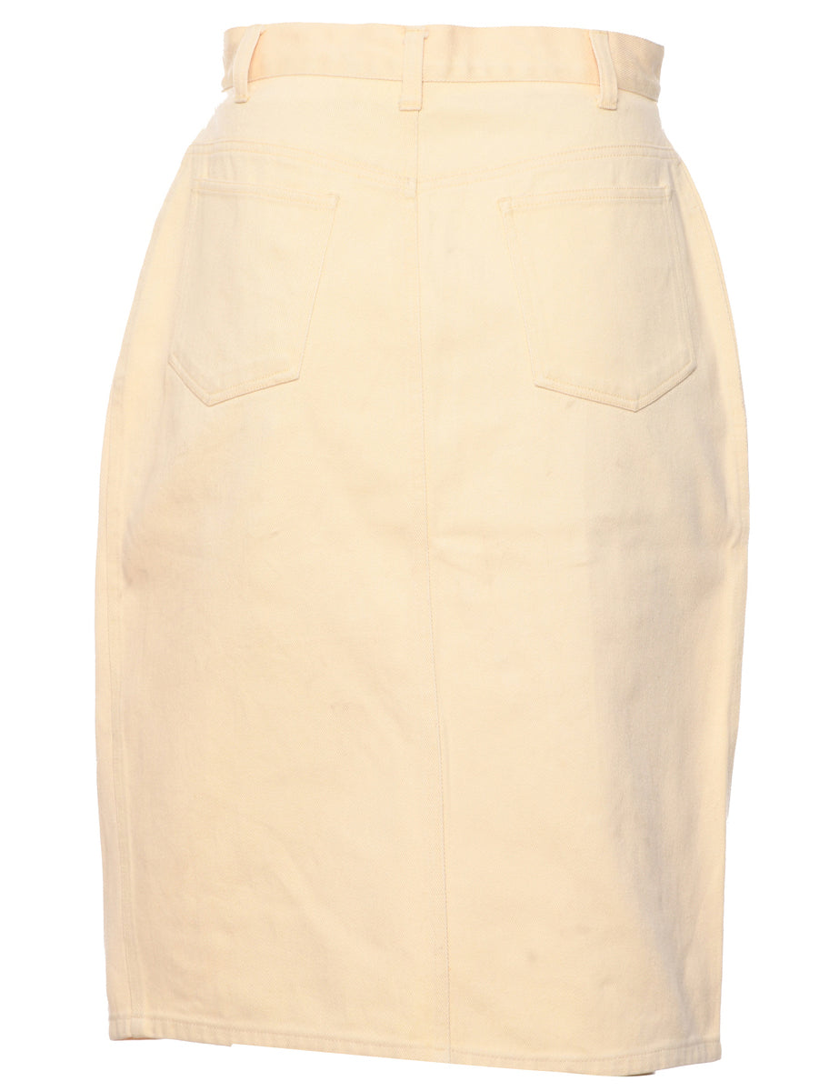 Vintage Pale Yellow Denim Midi Skirt - S