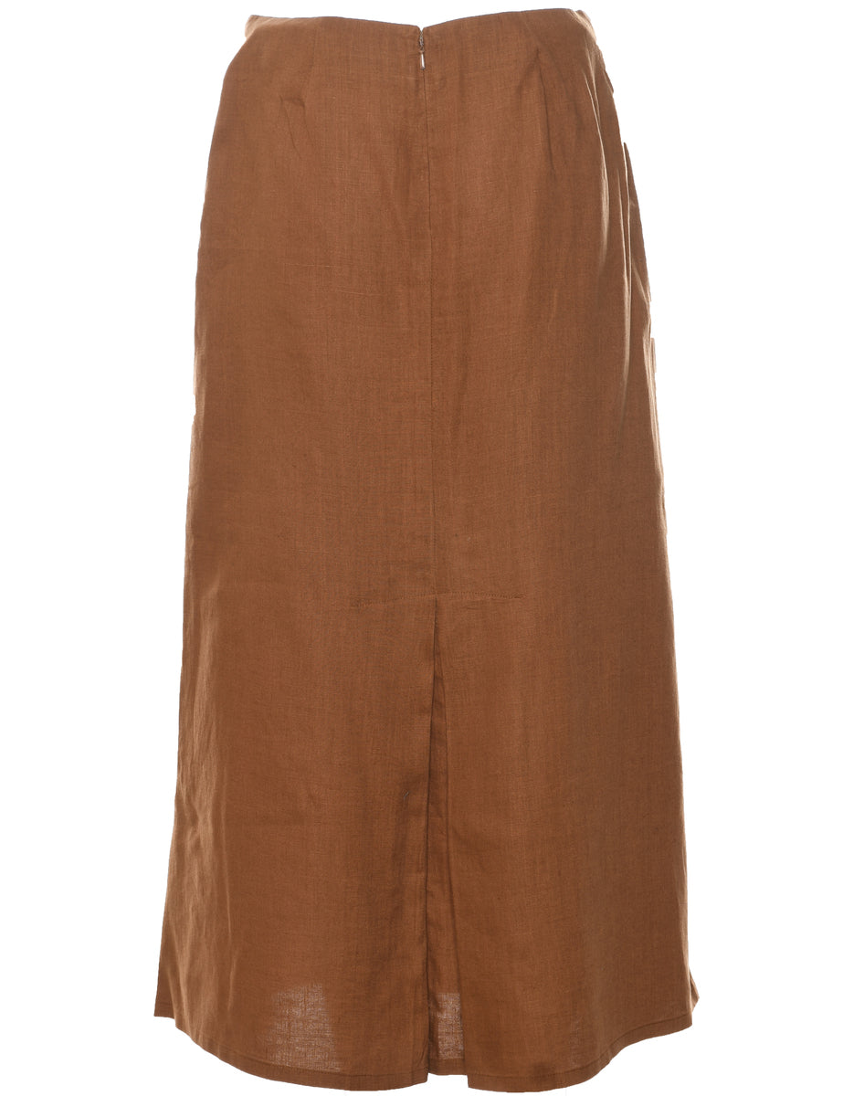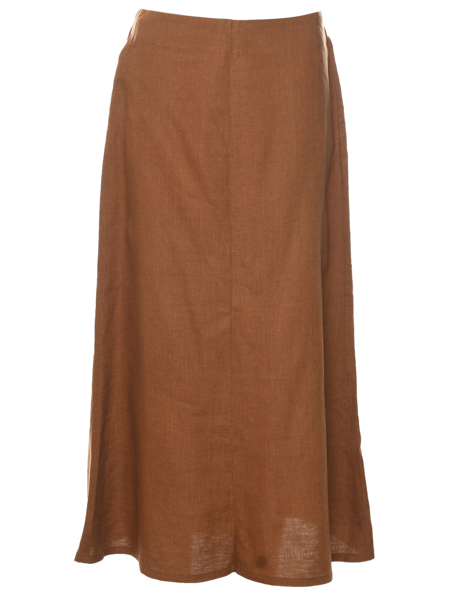 A-line maxi skirt in brown with slit.