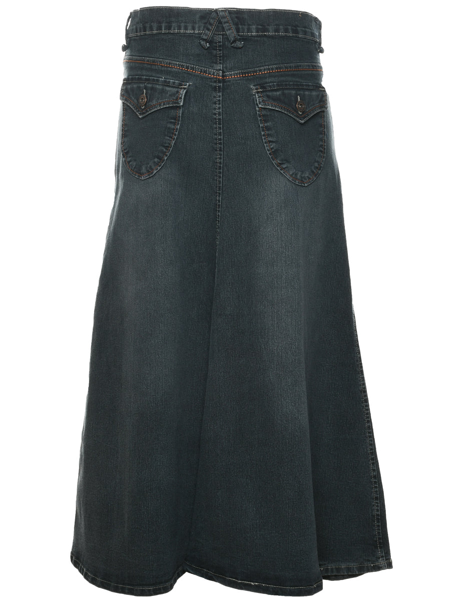 Denim full skirt in dark grey with multiple pockets.