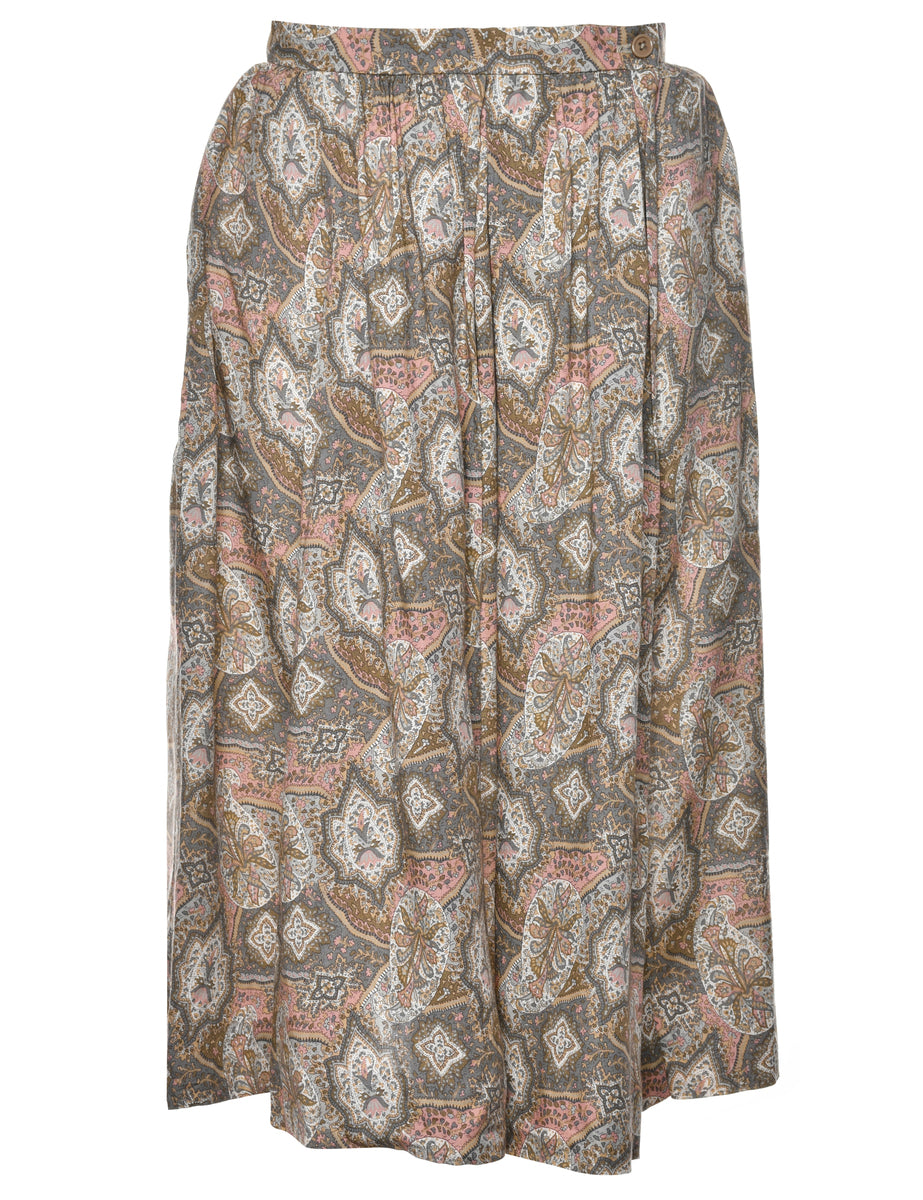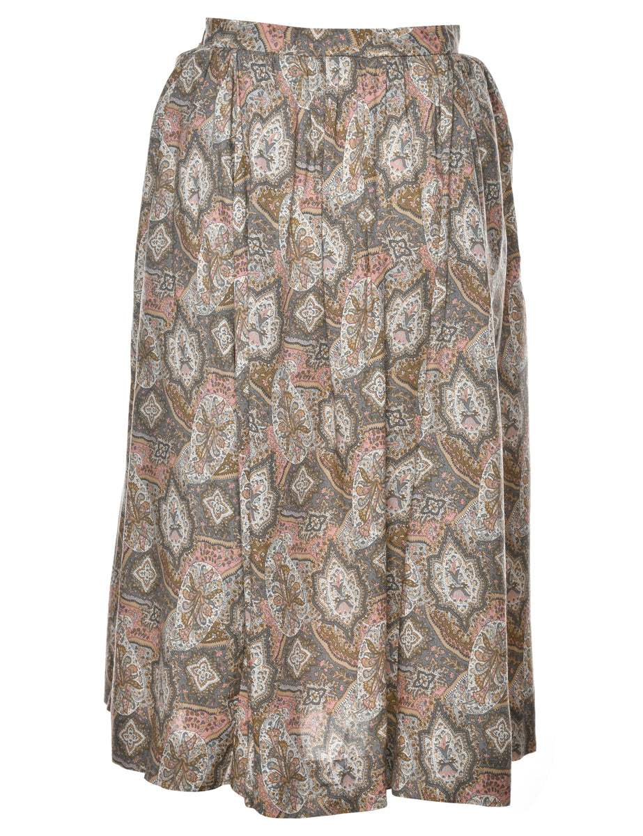 Vintage Floral Print Pleated Skirt - S