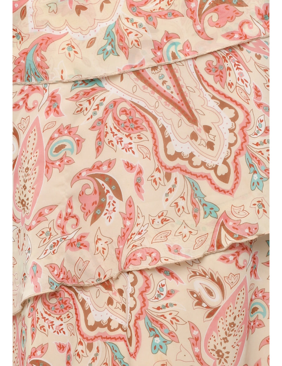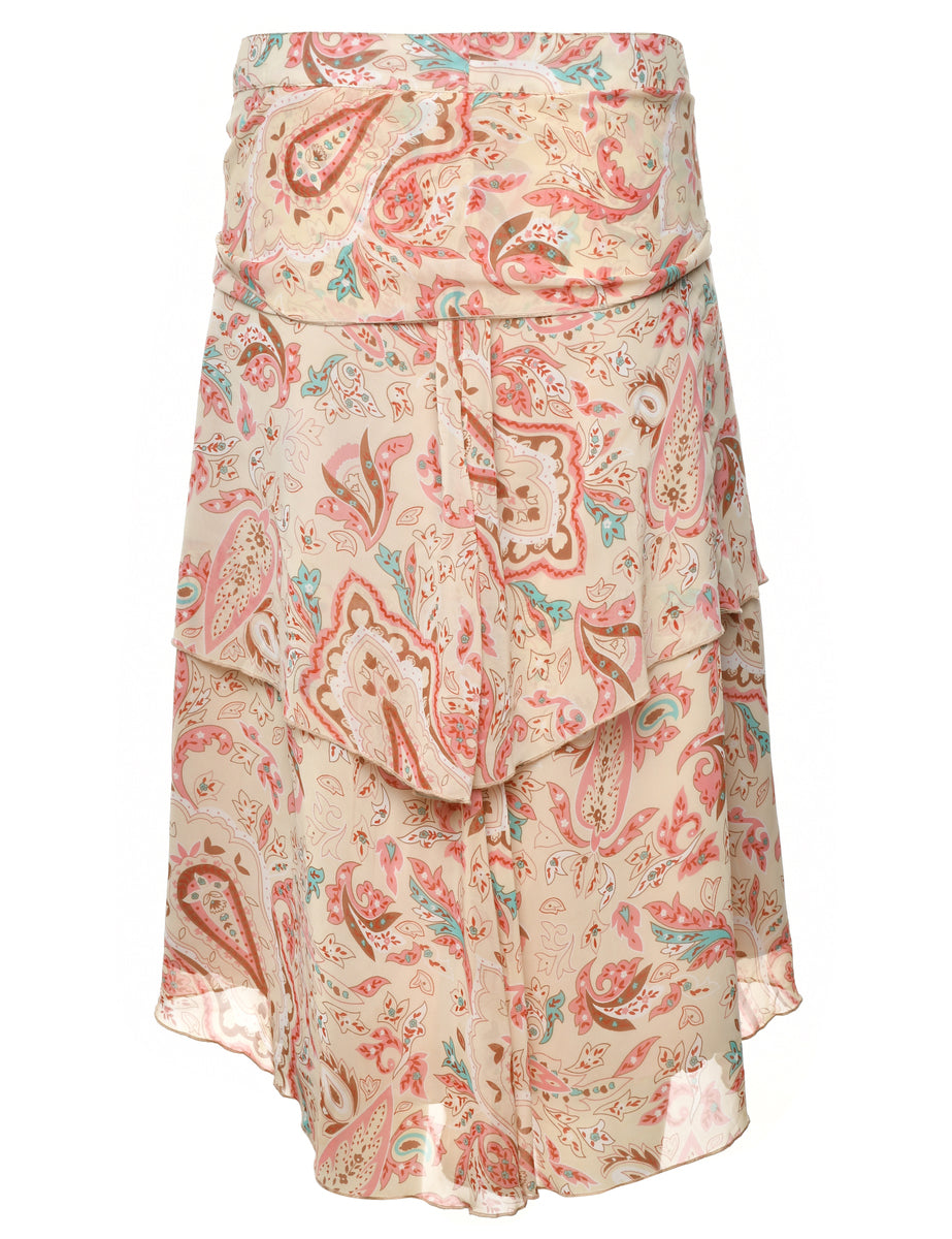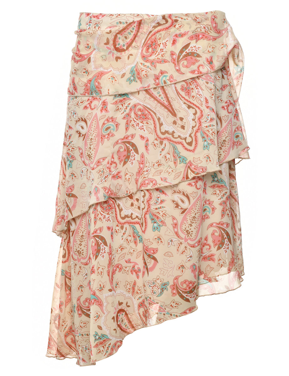 Paisley print maxi skirt in cream with an asymetric hem and full lining.