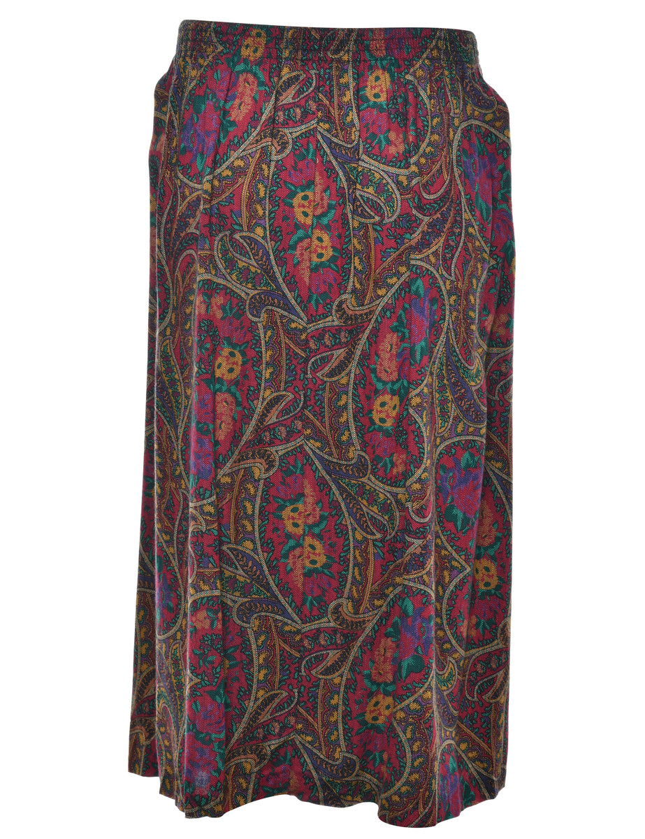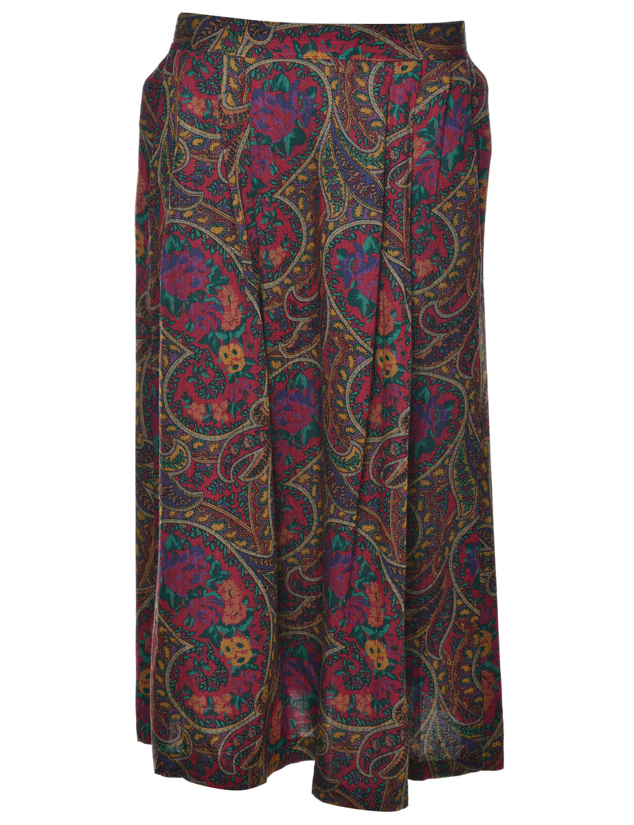 Paisley print multi-colour pleated skirt with an elasticized back and multiple pockets.