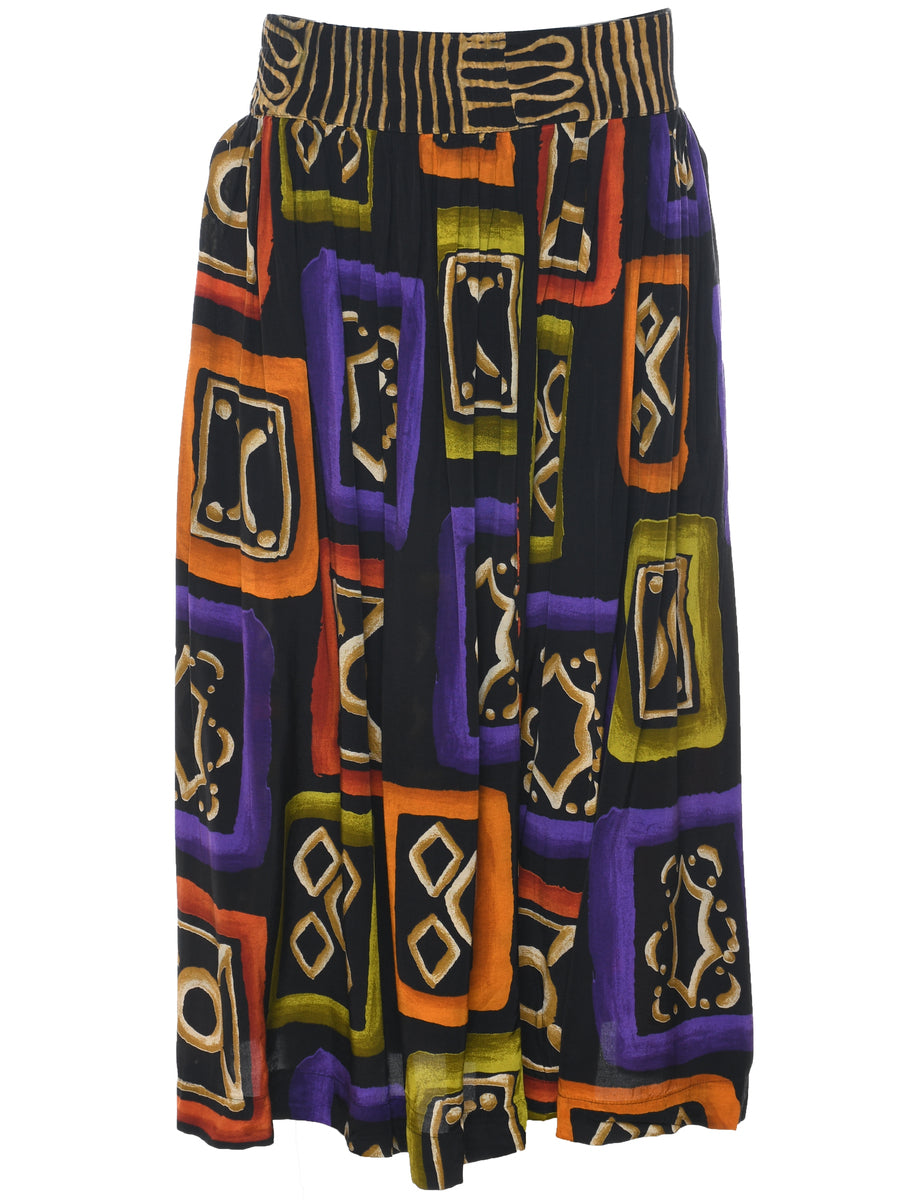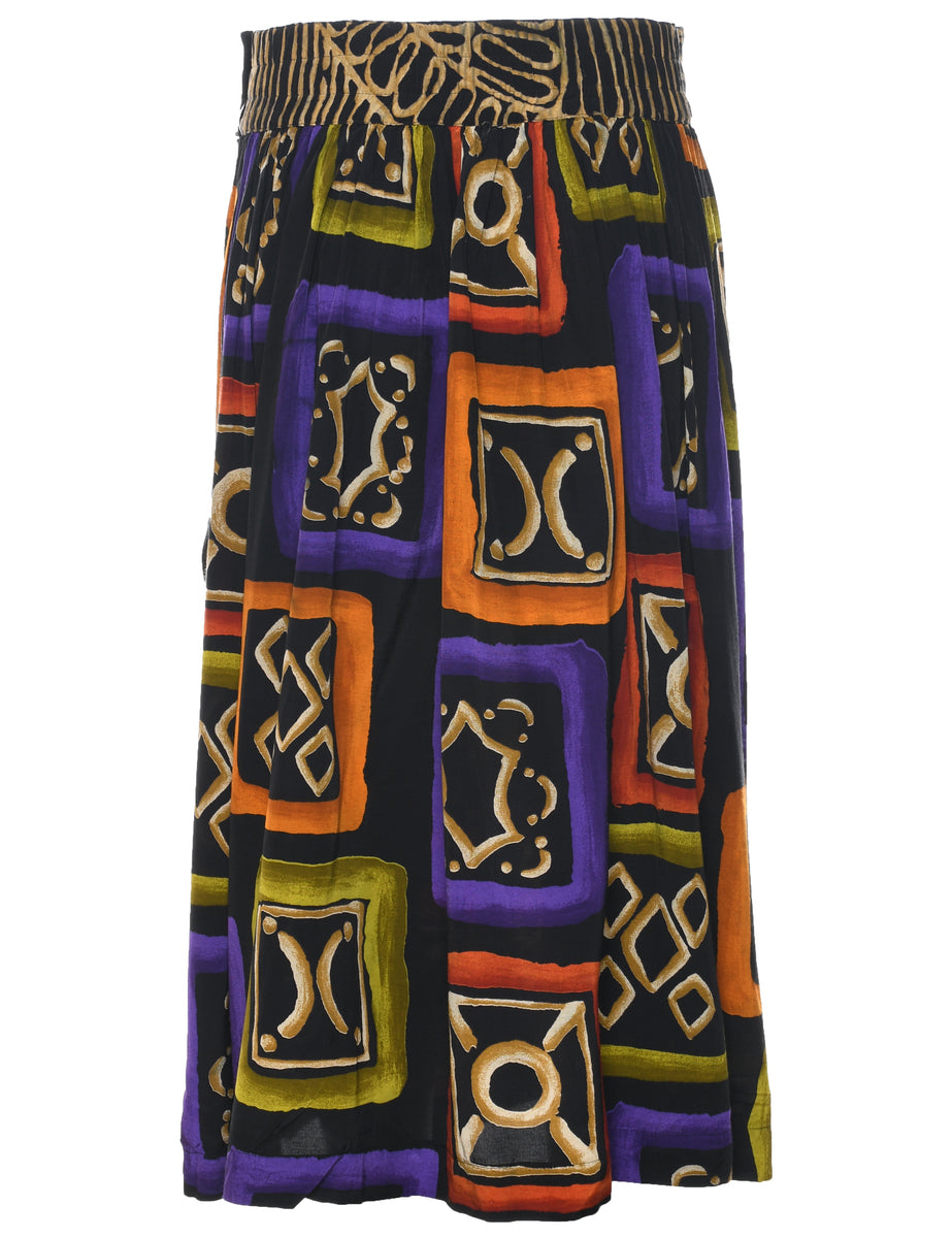 Vintage Patterned Pleated Skirt - M