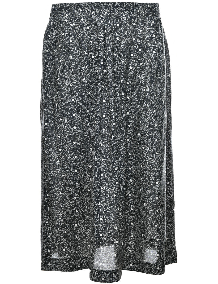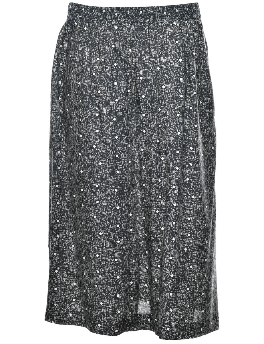 Spot print maxi skirt comes in black with an elasticized back and ruched detailing.