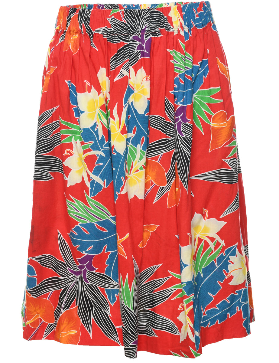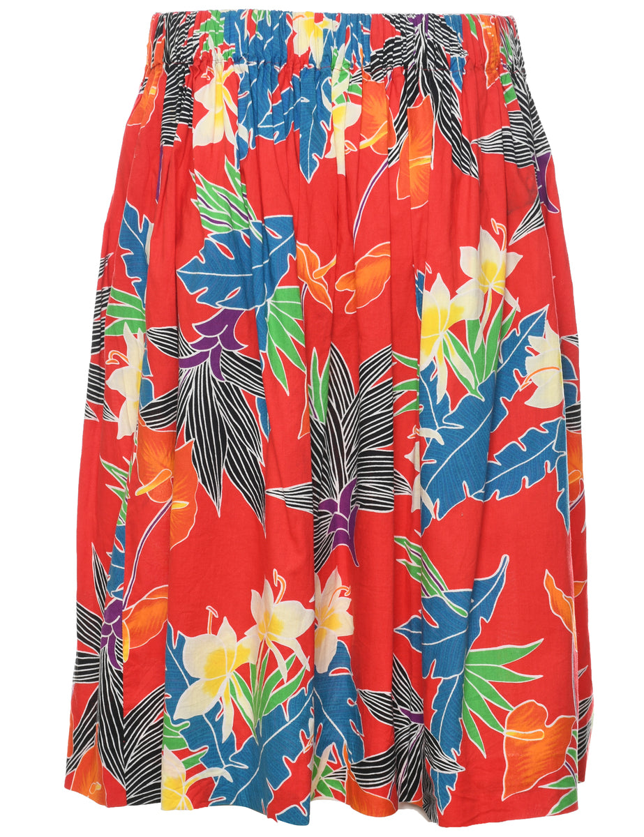 Floral pattern multi-colour flared skirt with an elasticized waist.