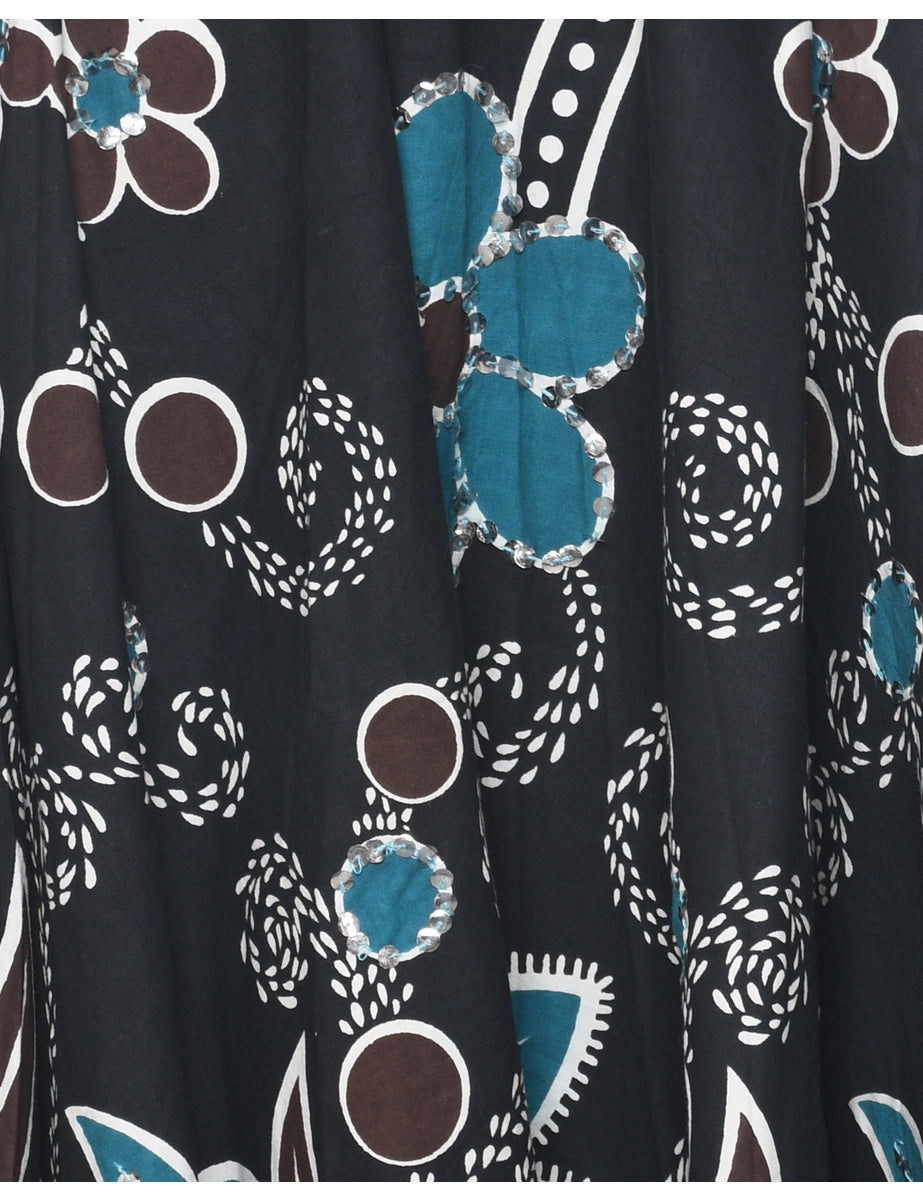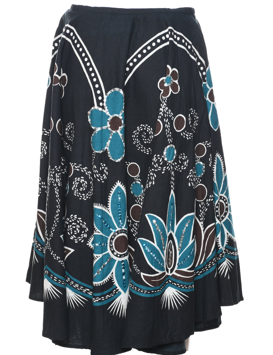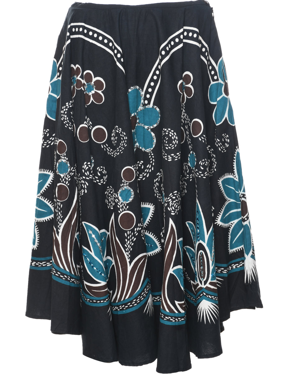 Floral pattern flared skirt in black.