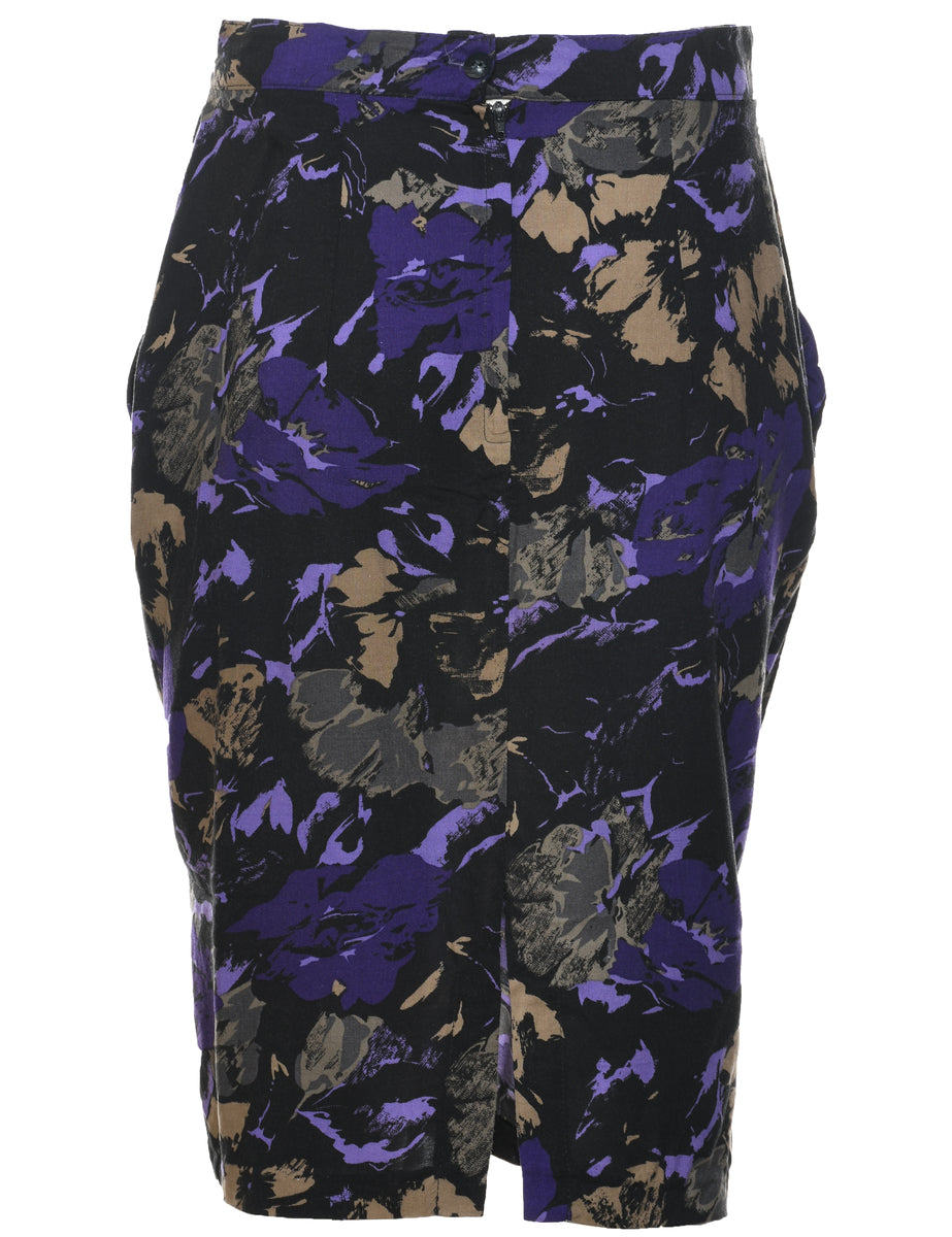 Vintage Floral Pattern Pencil Skirt - M