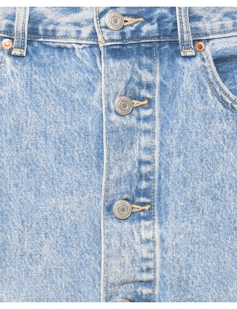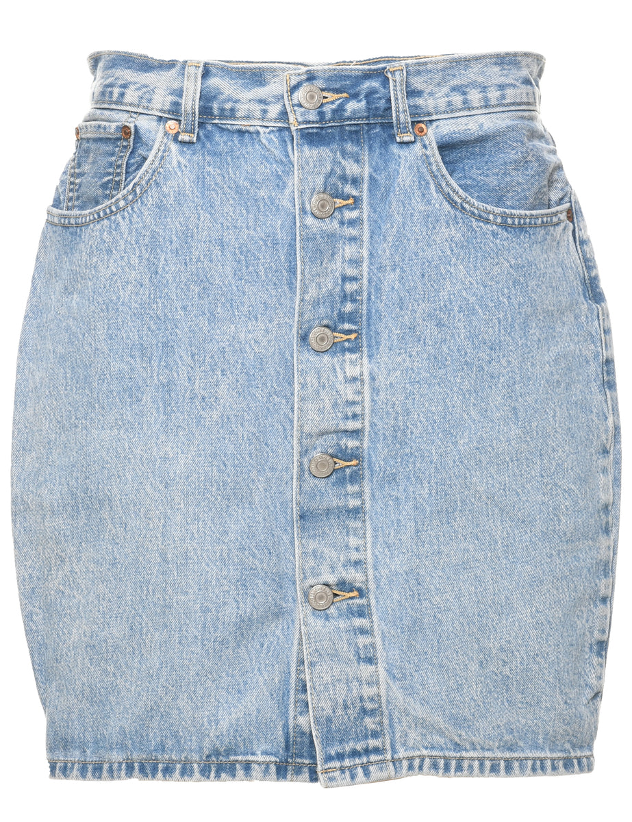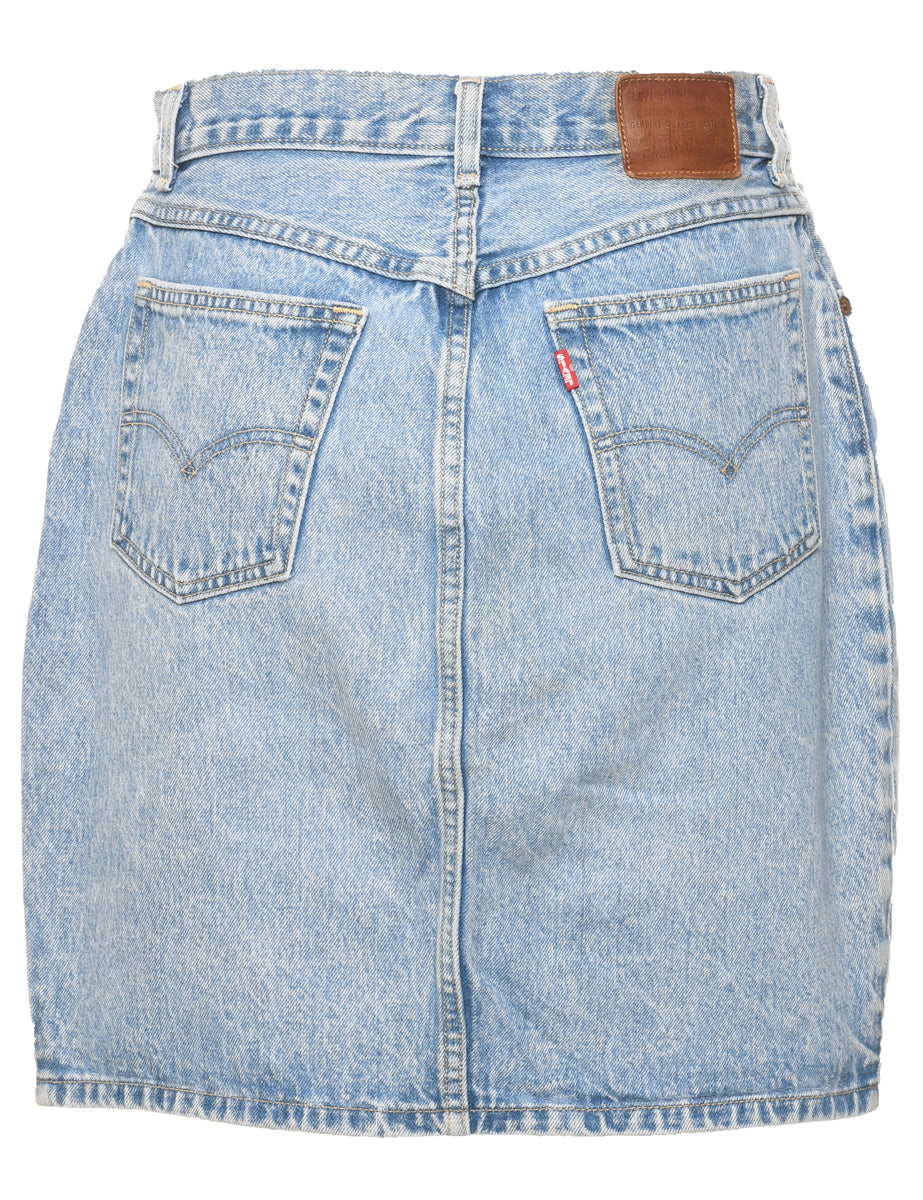 Levi's pencil shape denim midi skirt. Comes in light wash with multiple pockets.