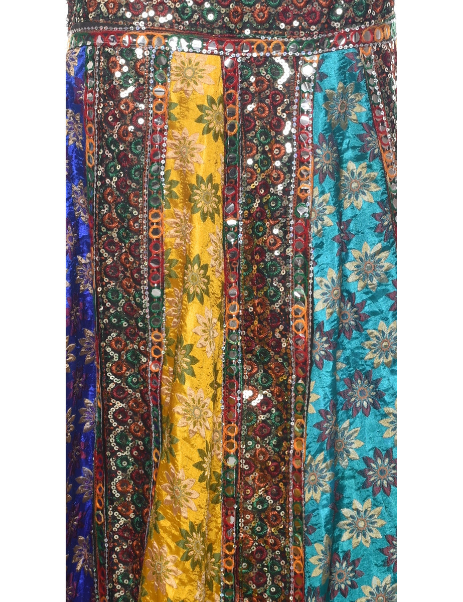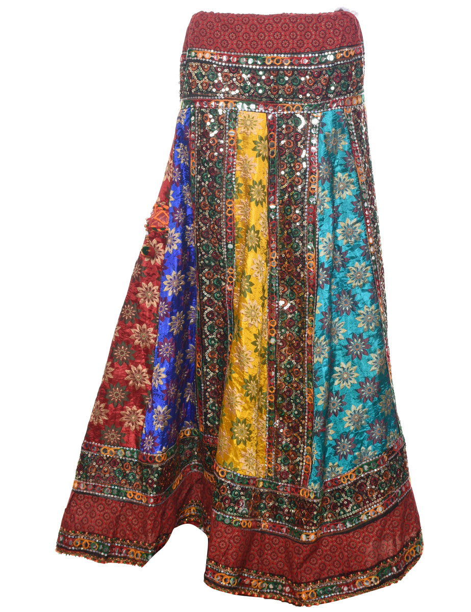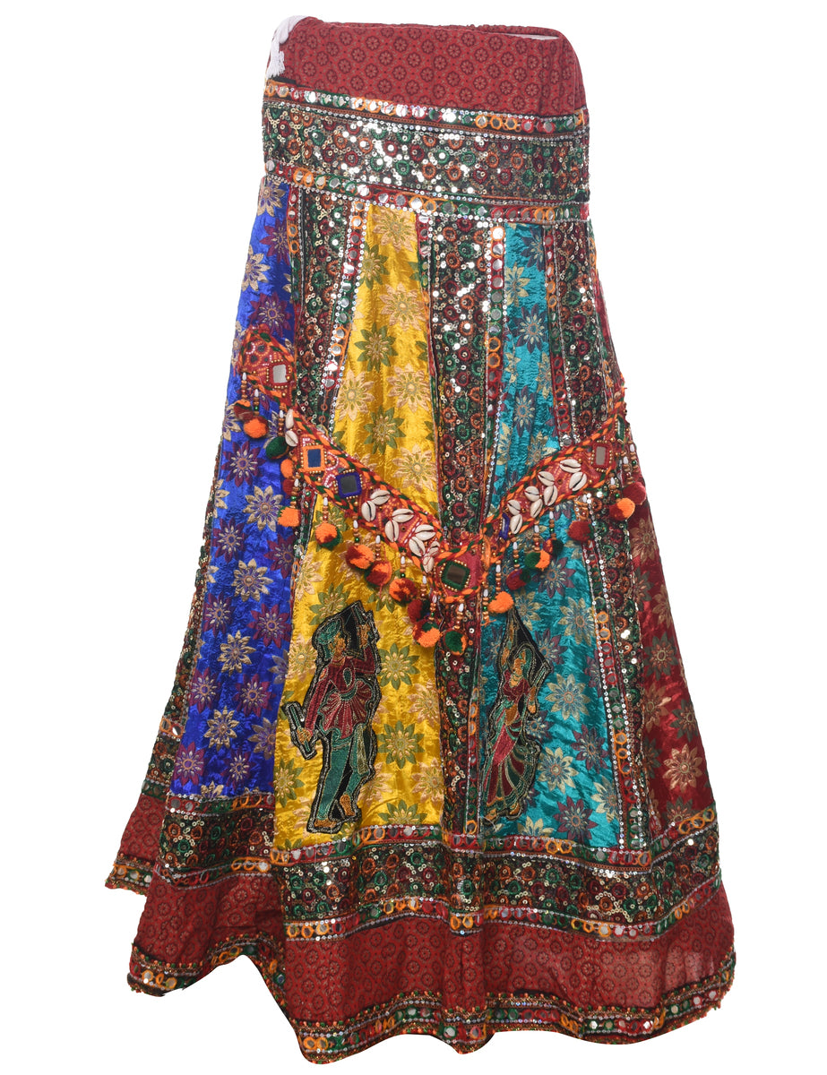 Vintage Patchwork Midi Skirt - L