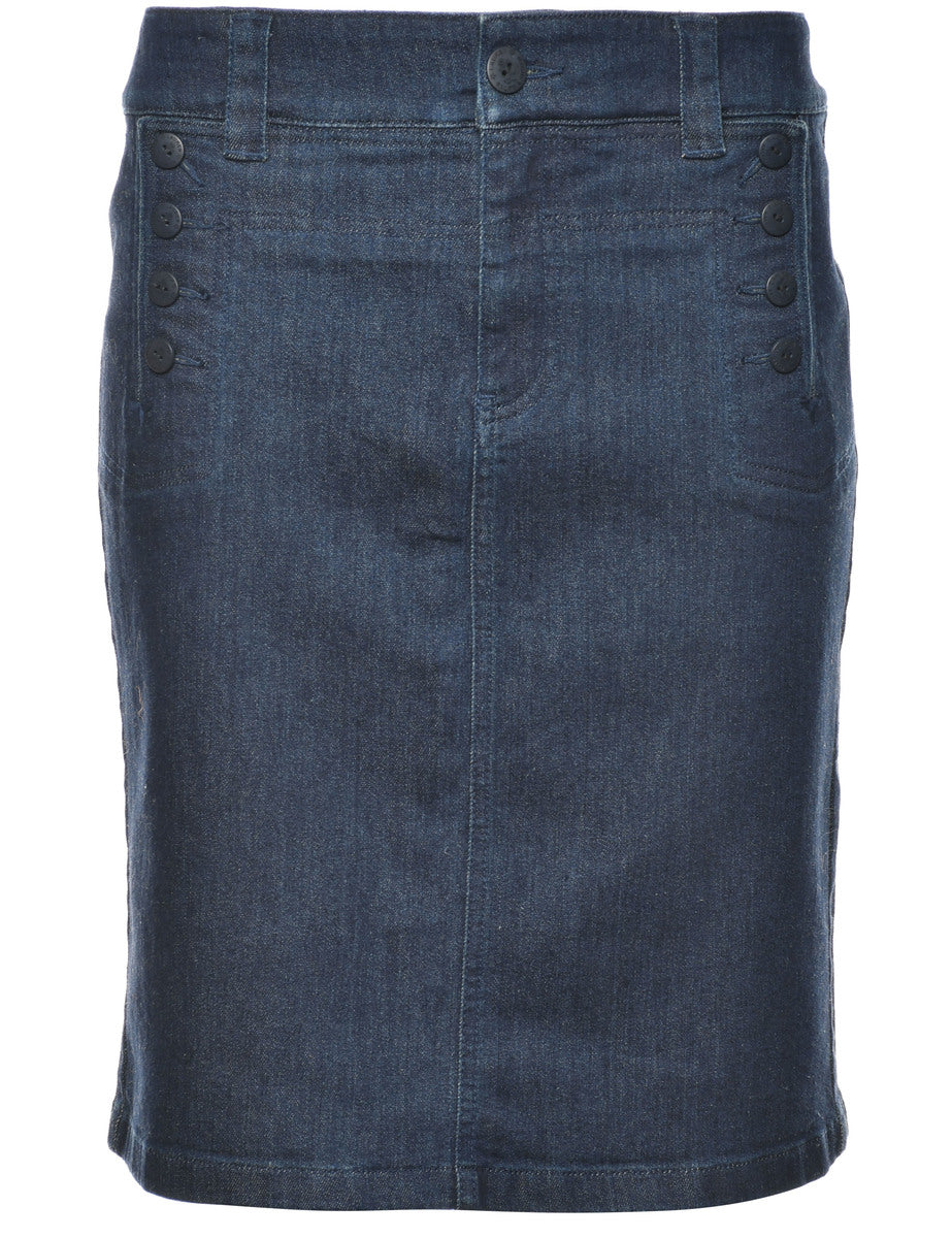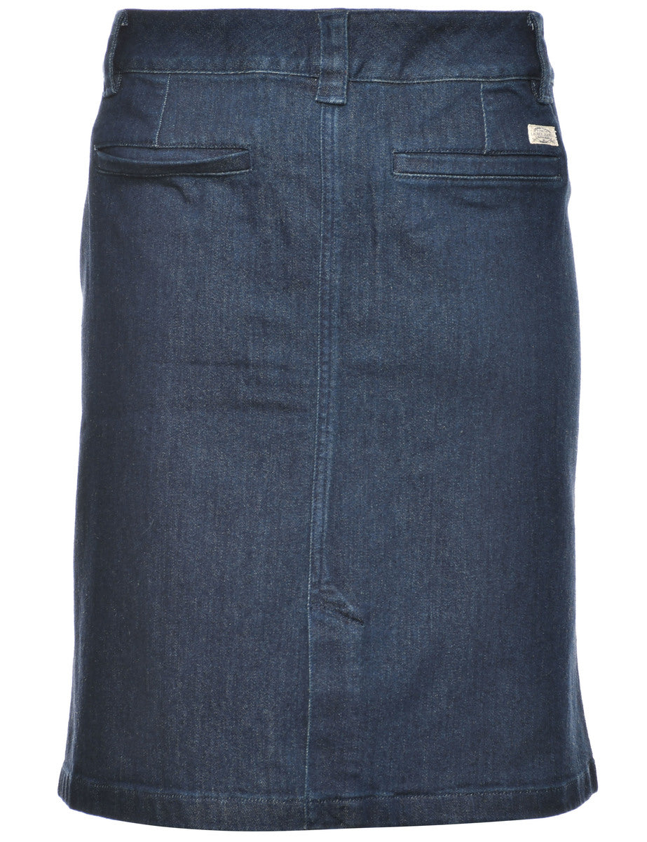Denim skirt in indigo with belt loops.