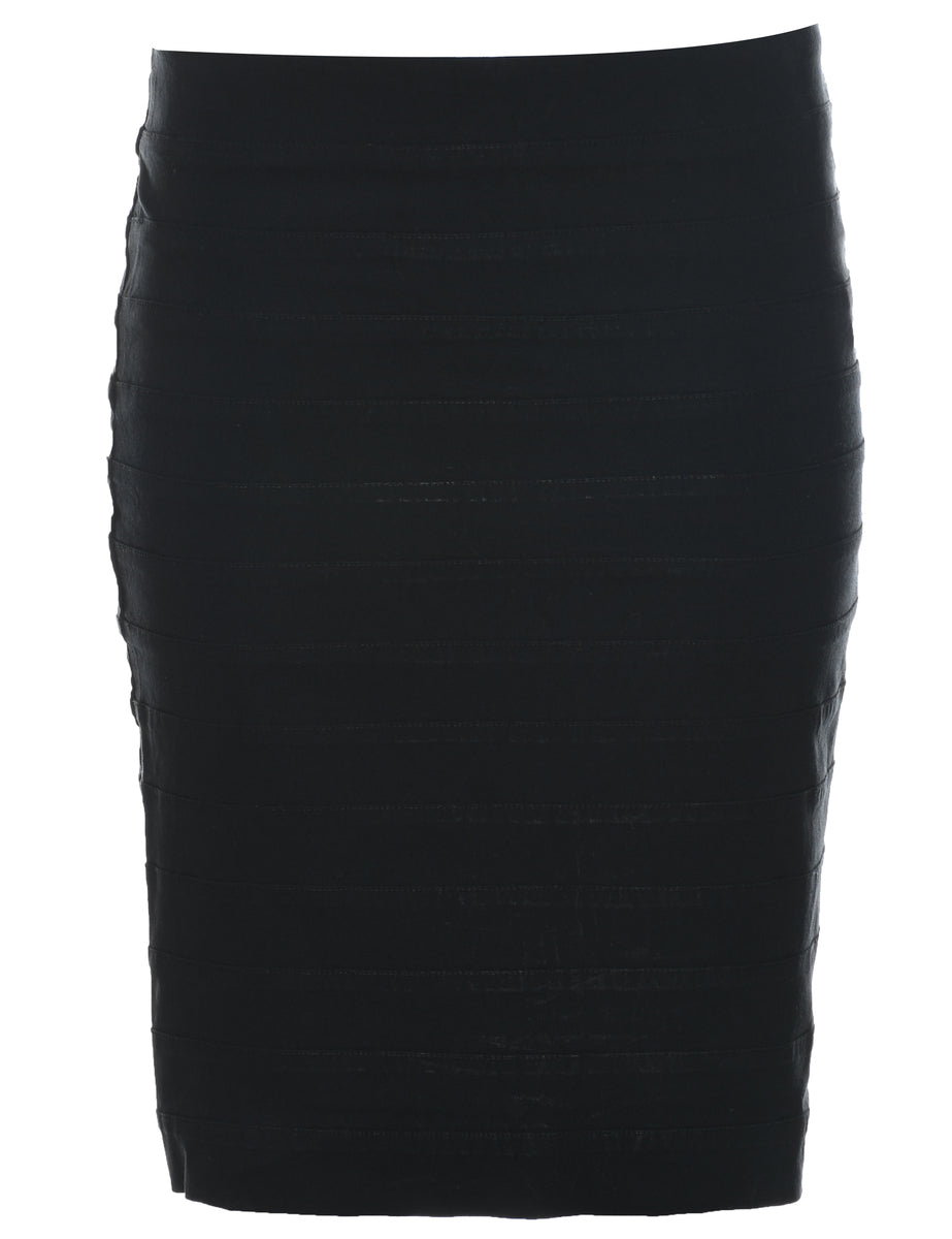 Body-con black pencil skirt with contrast stitching.