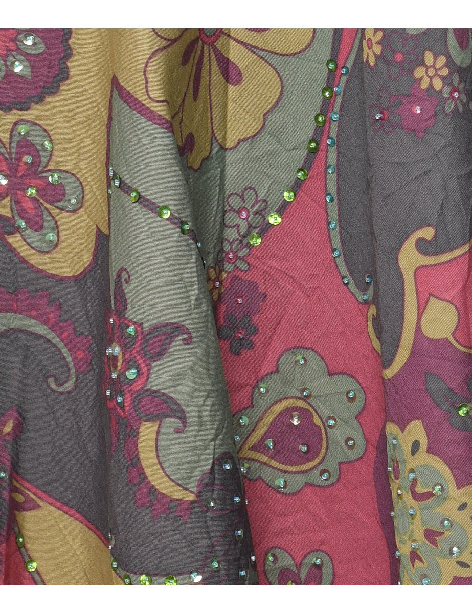 Floral pattern flared skirt comes in multi-colour with beading.