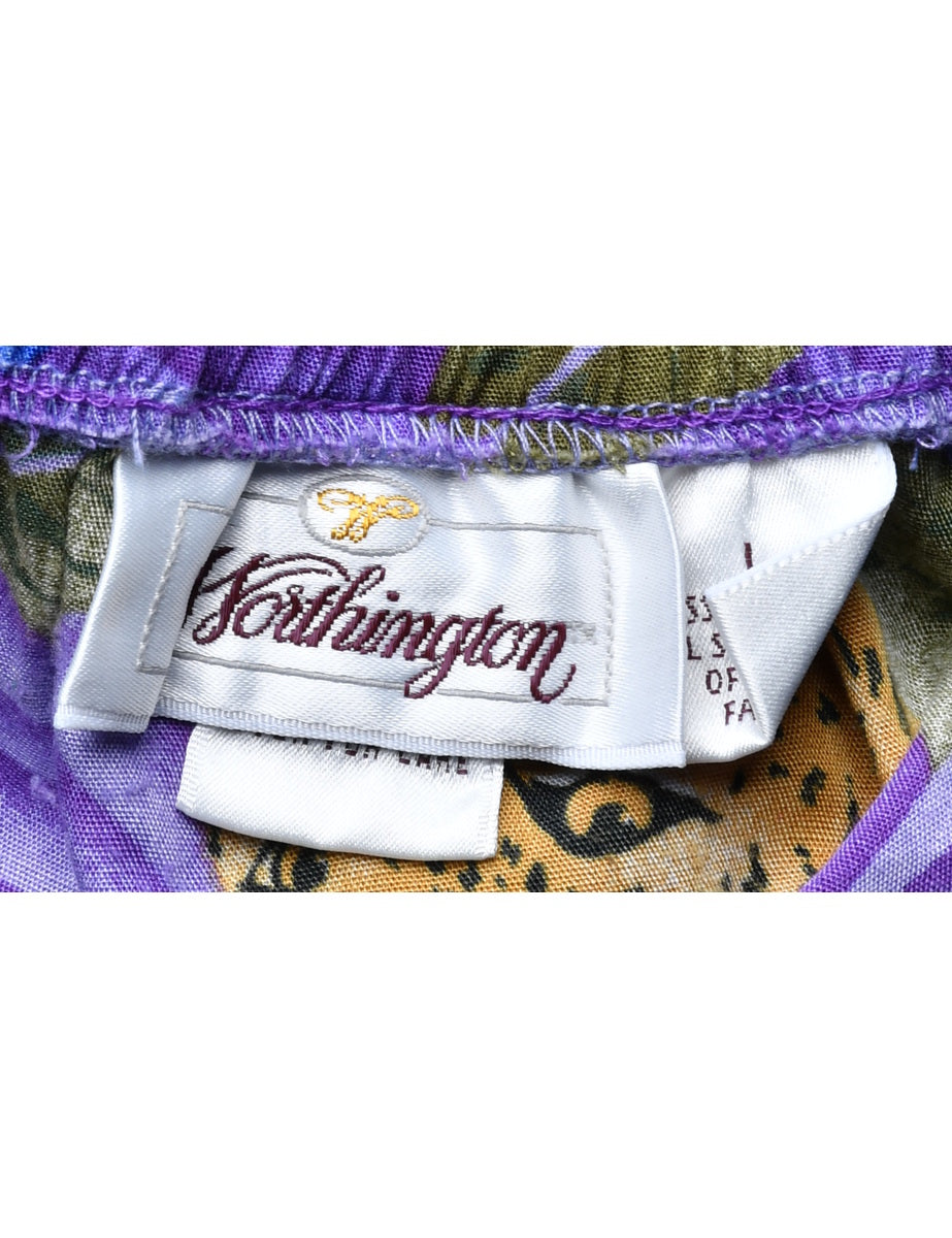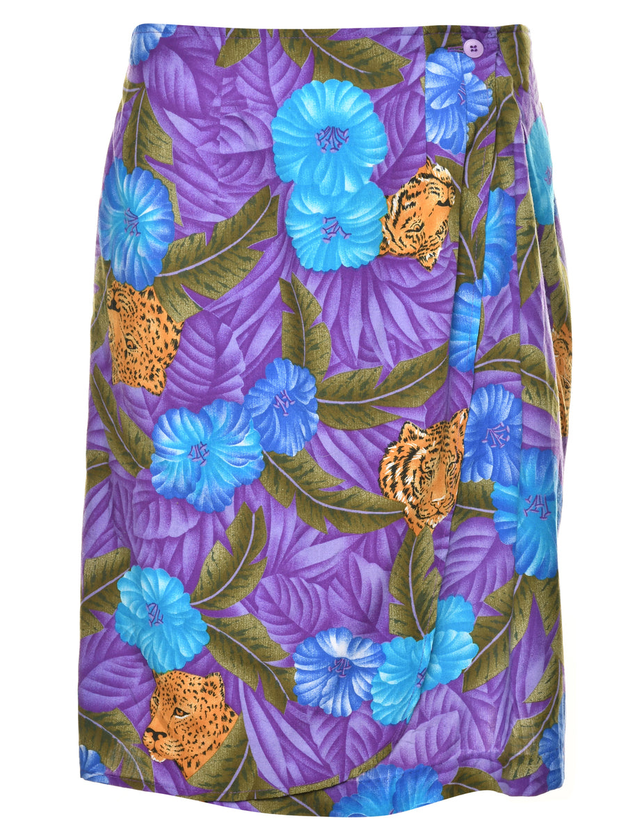 Hawaiian print purple tulip skirt with an elasticized back.