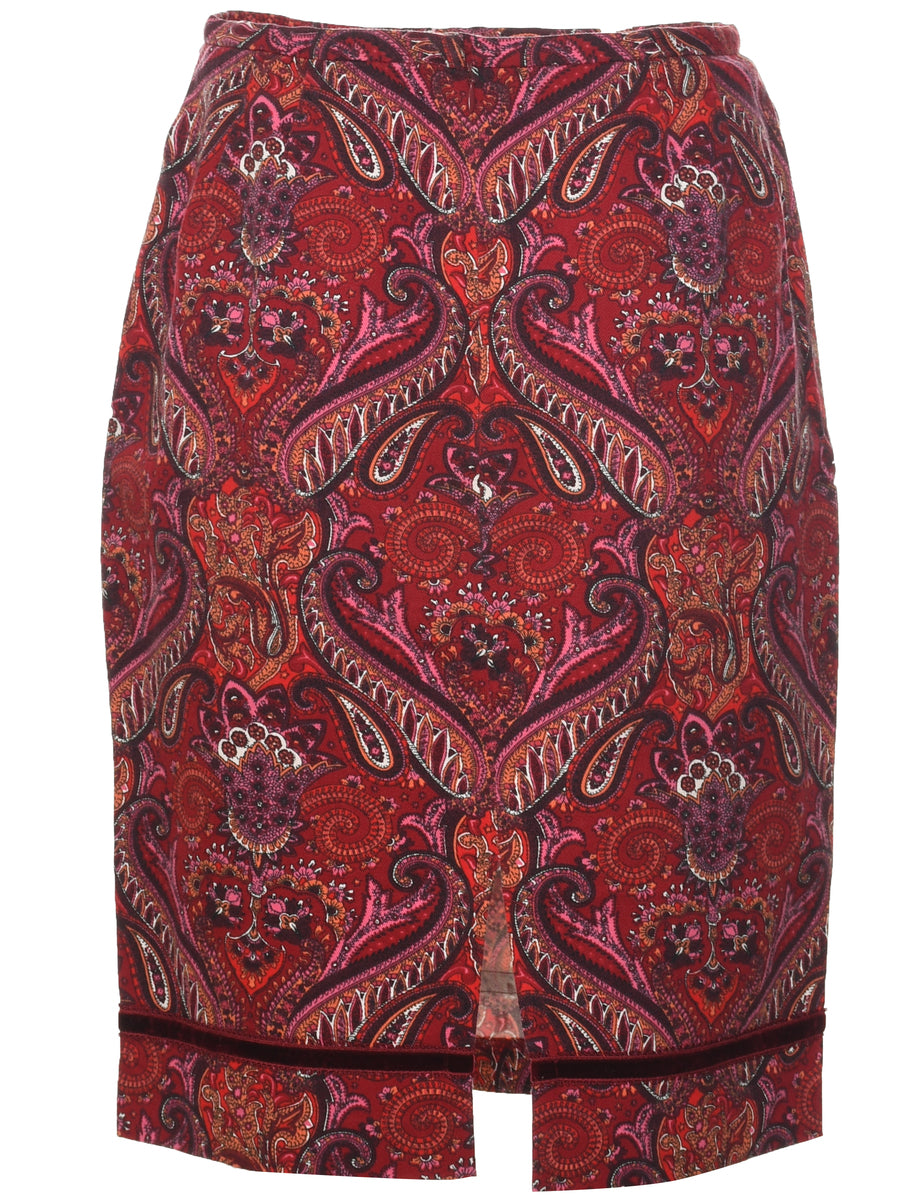 Vintage Paisley Print Pencil Skirt - M
