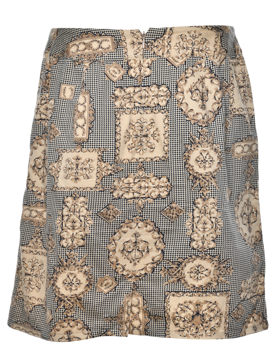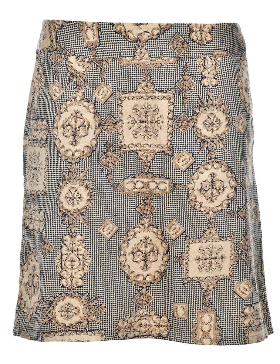 Patterned a-line skirt. Comes in beige & grey with multiple pockets.