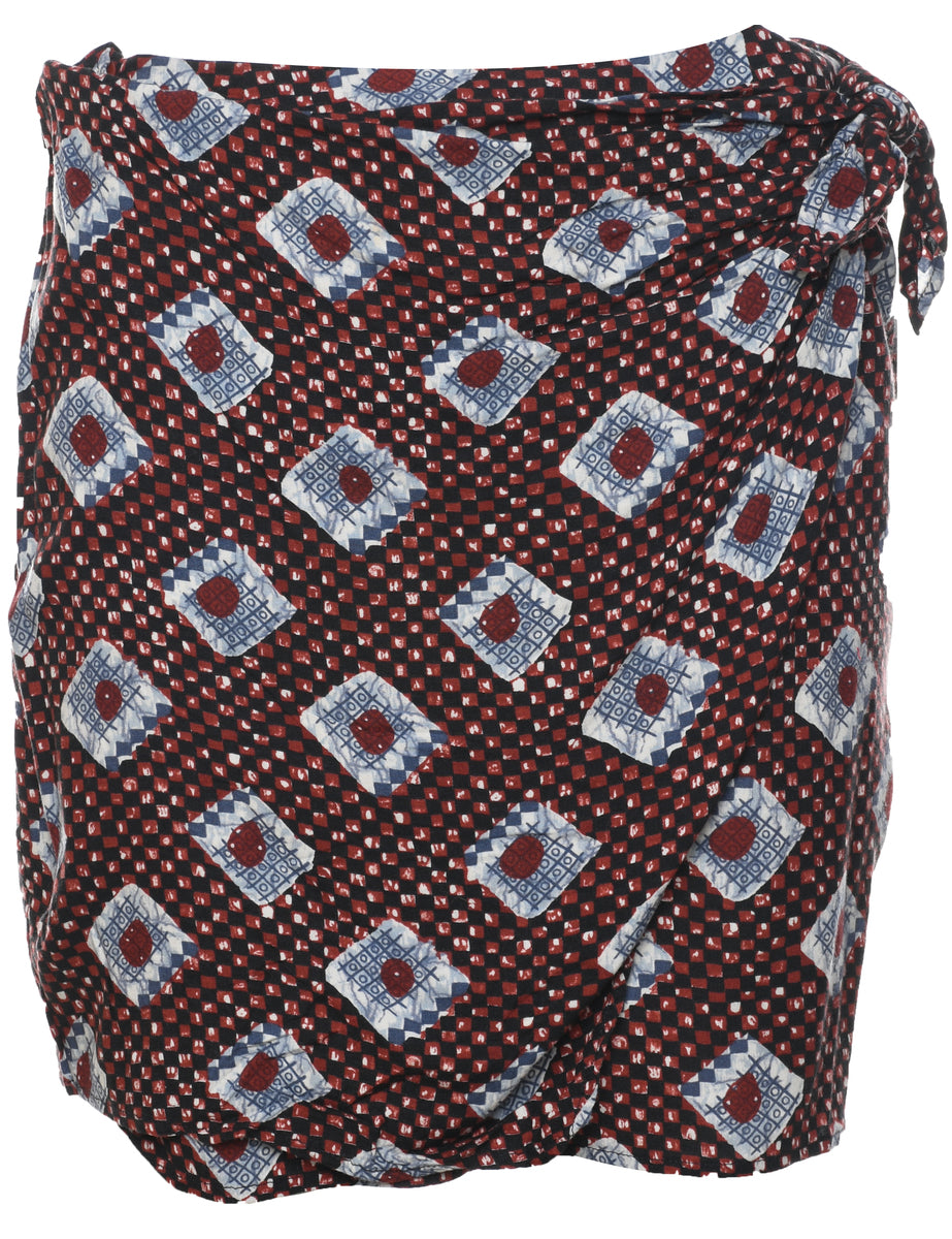 Vintage Patterned Tiered Skirt - M