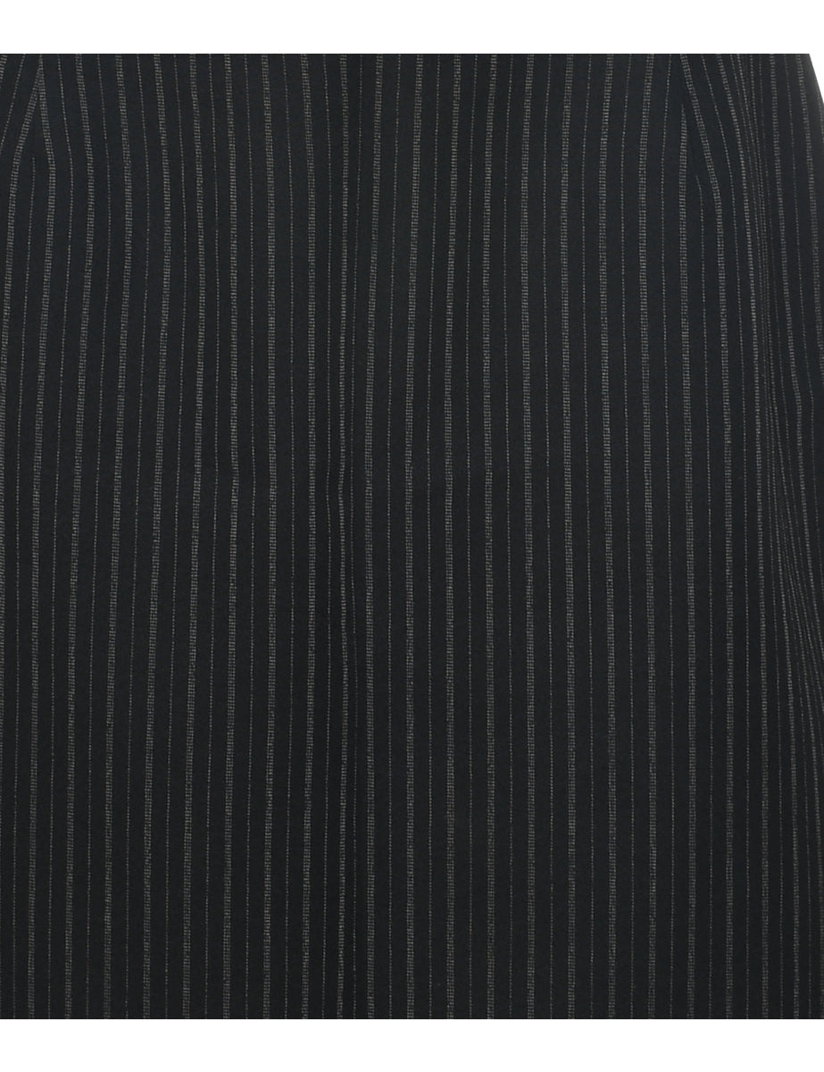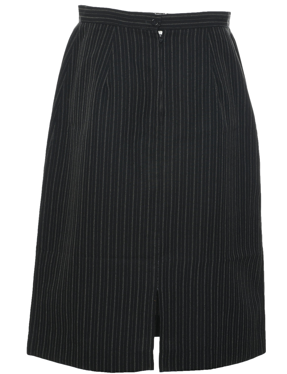 Pinstriped a-line skirt in black with slit.