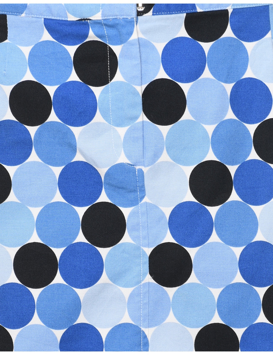 Polka dot pencil skirt in multi-colour with multiple pockets.