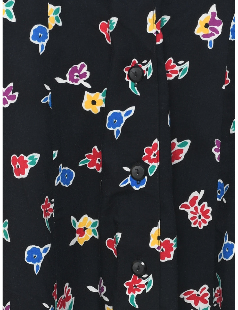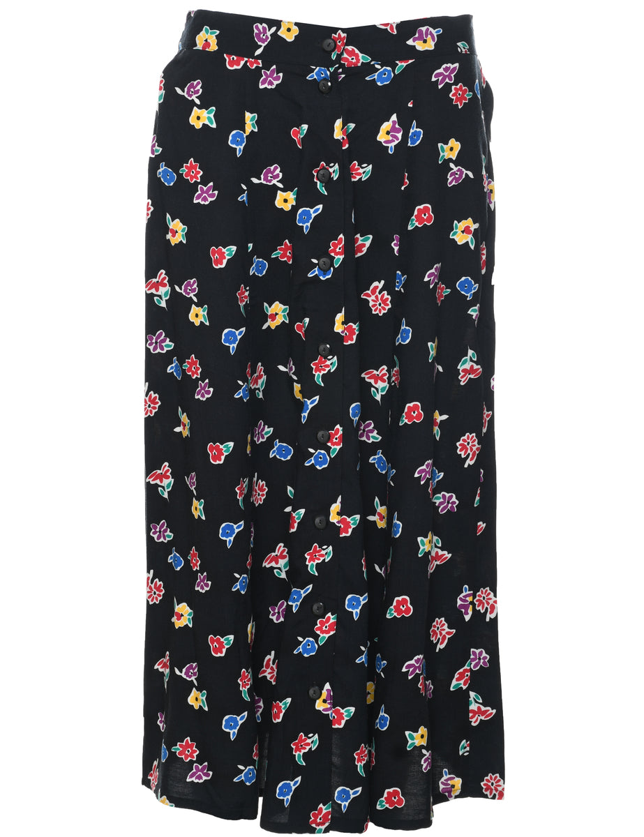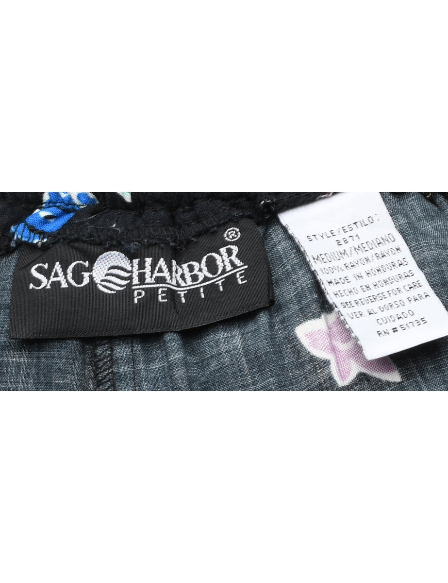 Sag Harbor floral pattern maxi skirt in black with an elasticized back.