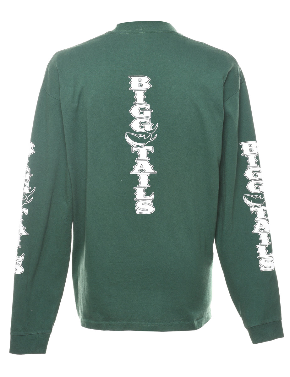 Long-sleeved Bigg Tails printed dark green t-shirt.