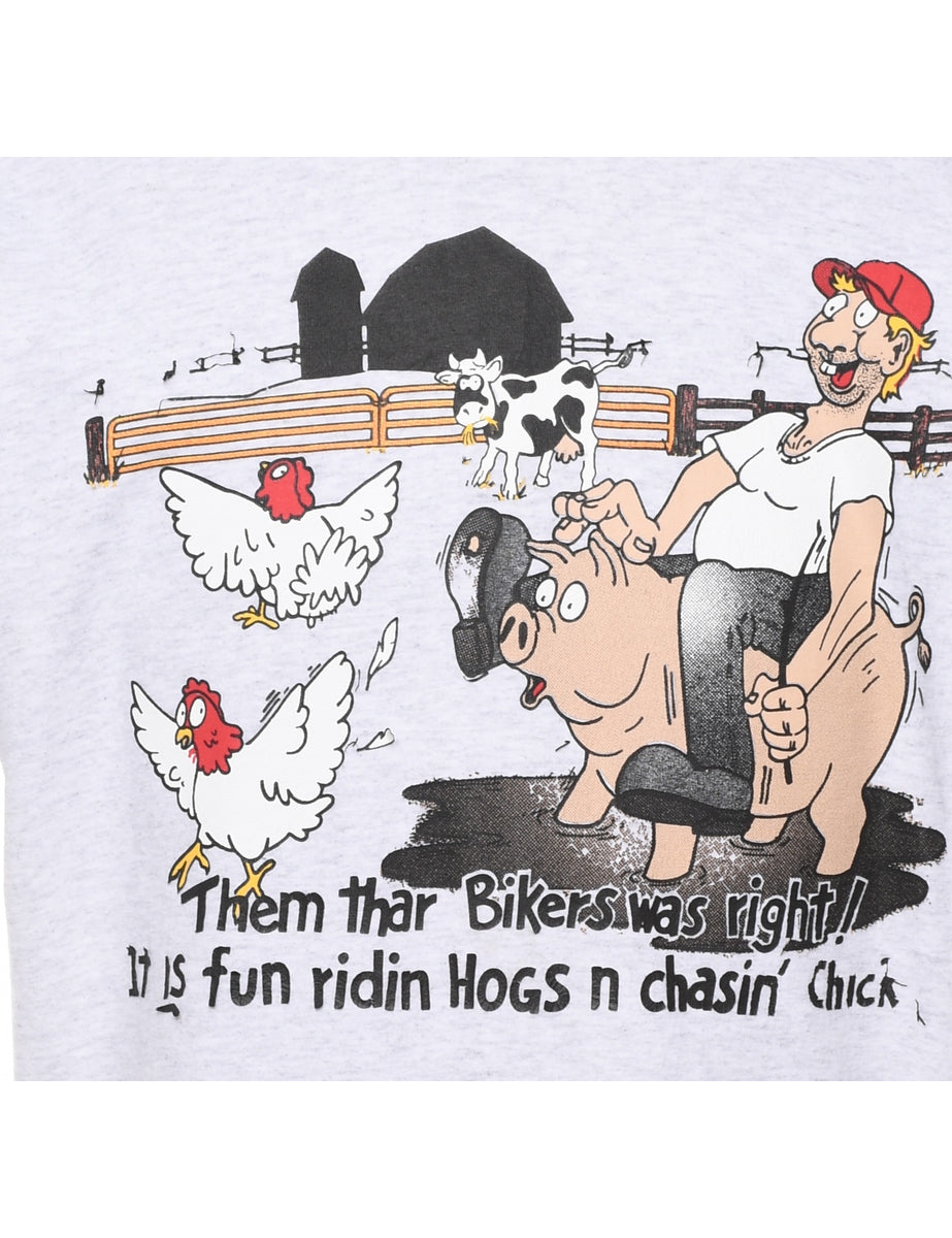 Vintage Marl Grey Novelty Design Printed T-shirt - XL