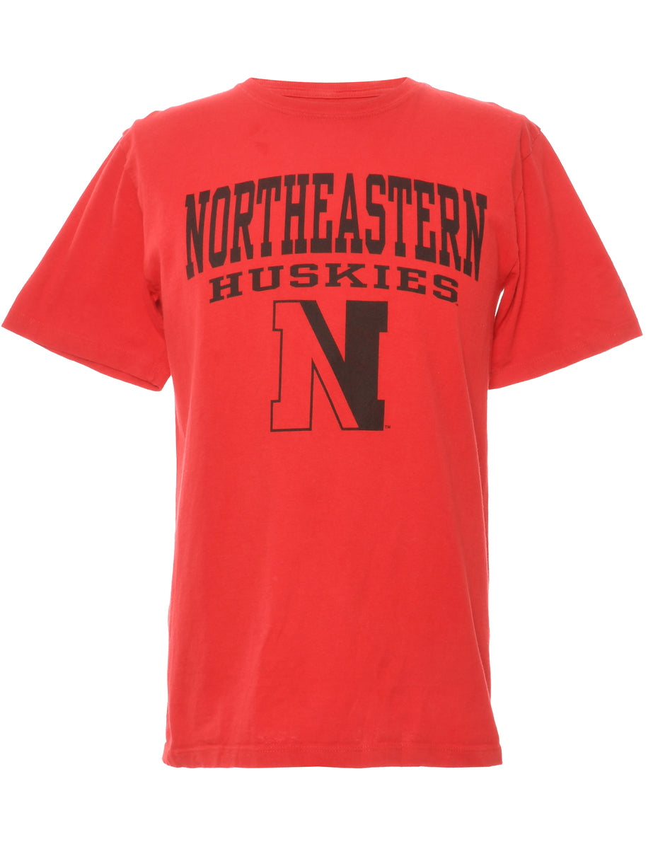 Vintage North Eastern Huskies Red & Black Printed T-shirt - M