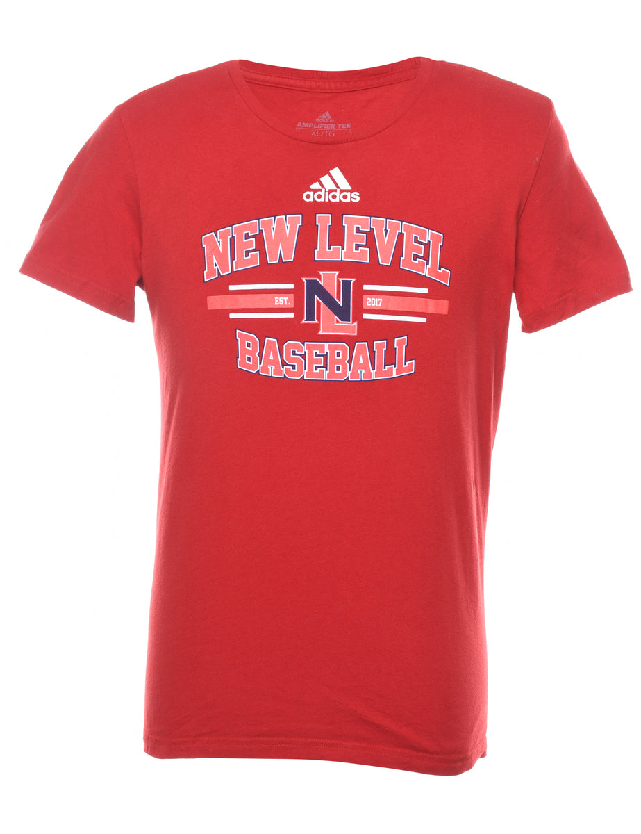 Vintage Red New Level Baseball Printed T-shirt - XL