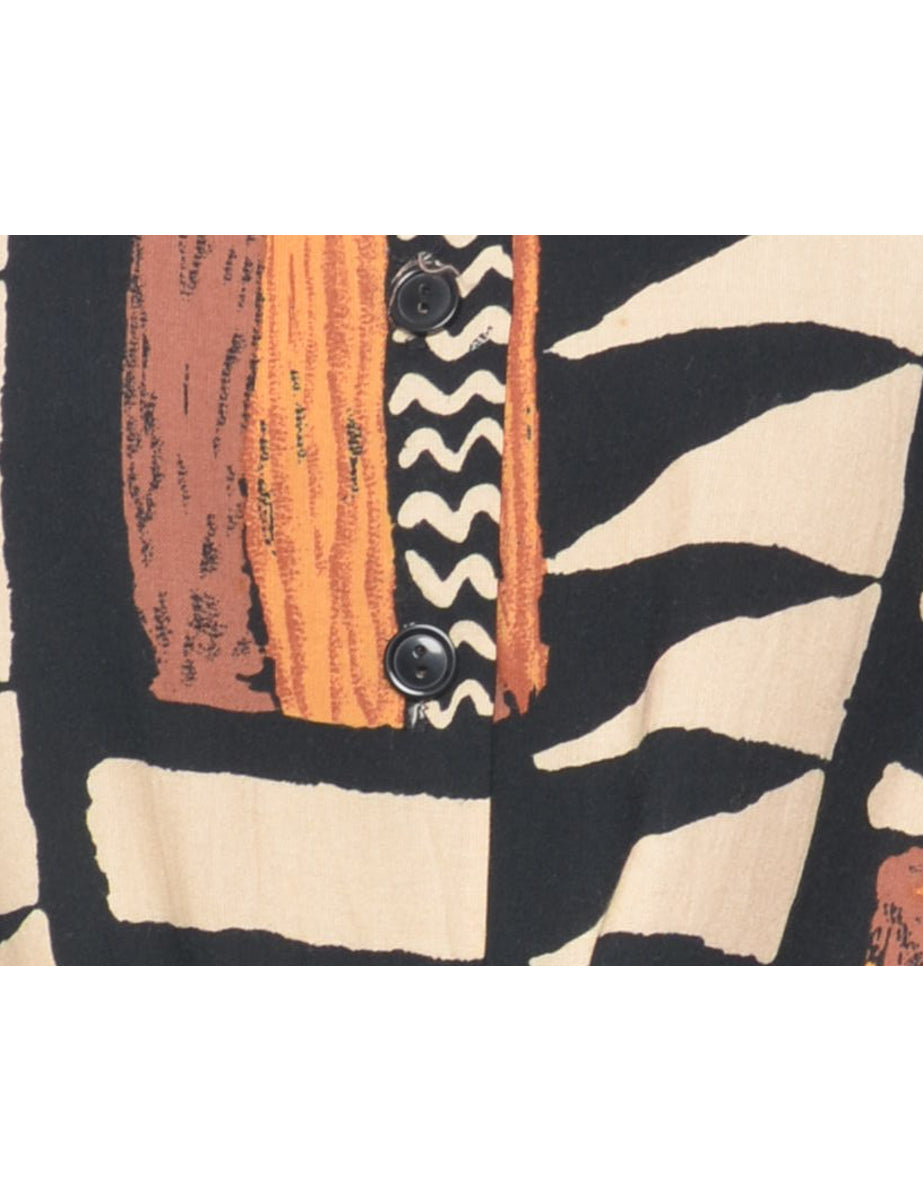 Patterned blouse in multi-colour with tie detail and sheer sleeves.