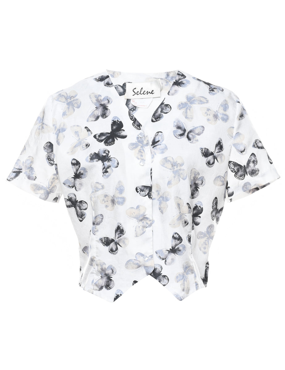 Vintage White Floral Blouse - M