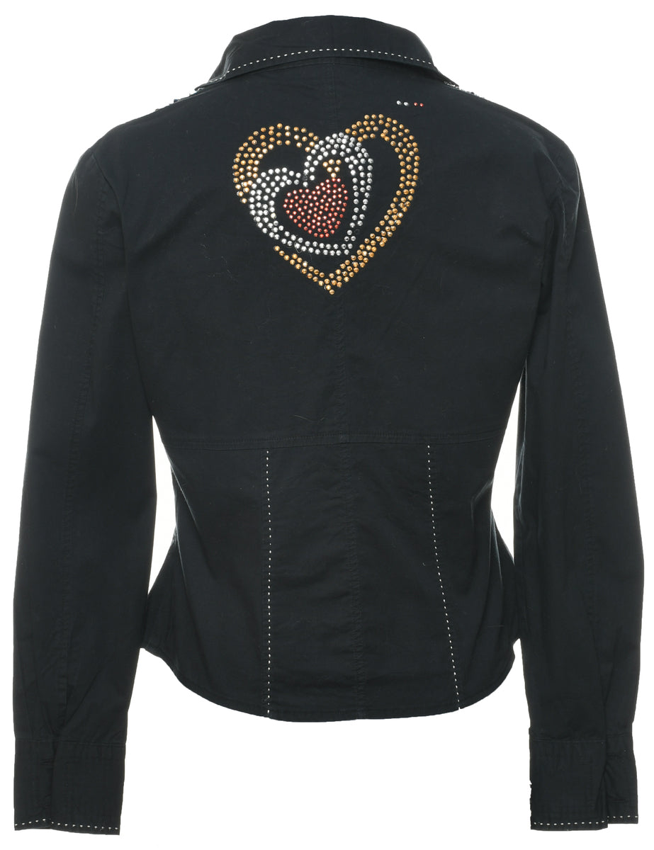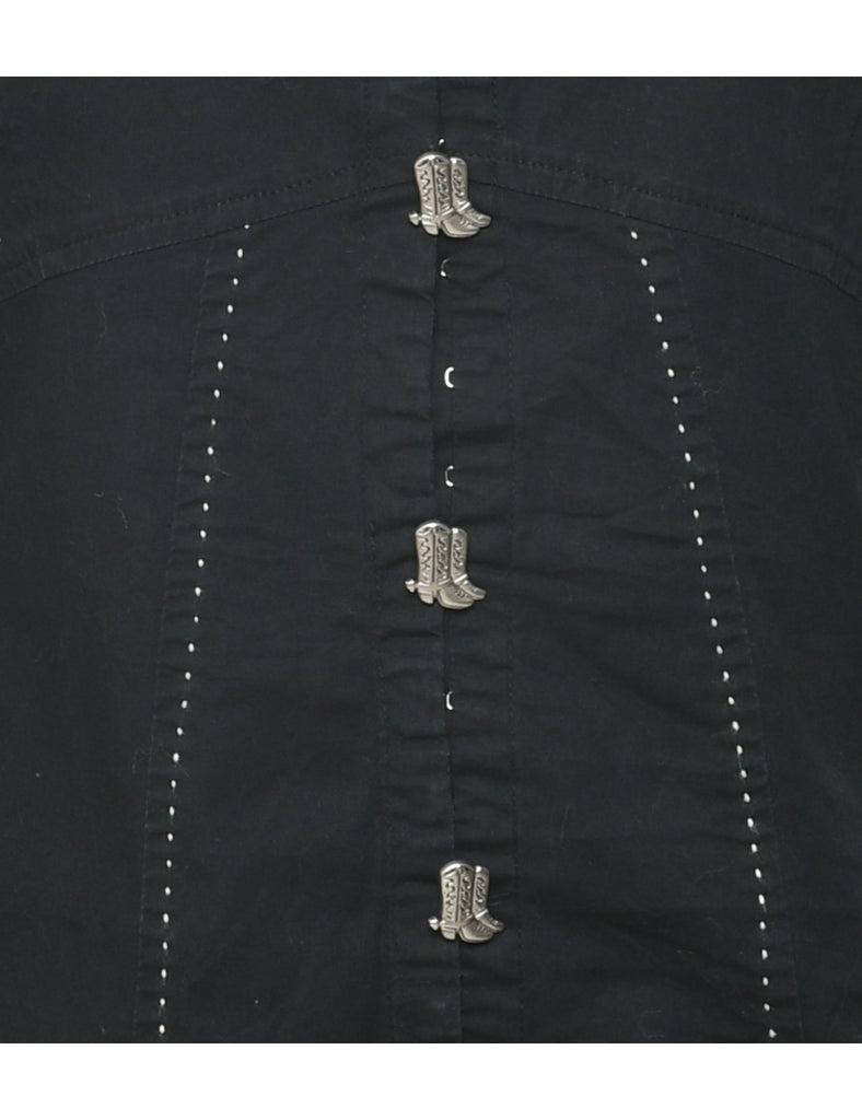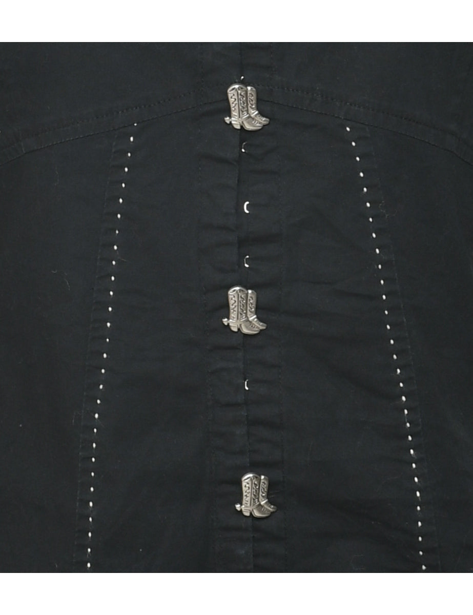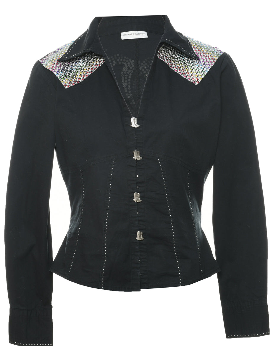 Vintage Black Western Themed Evening Blouse - M