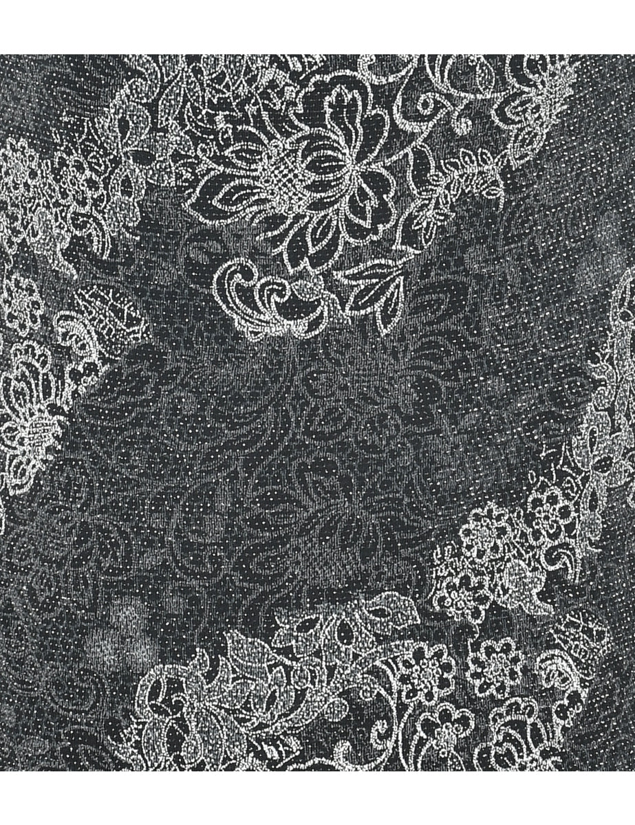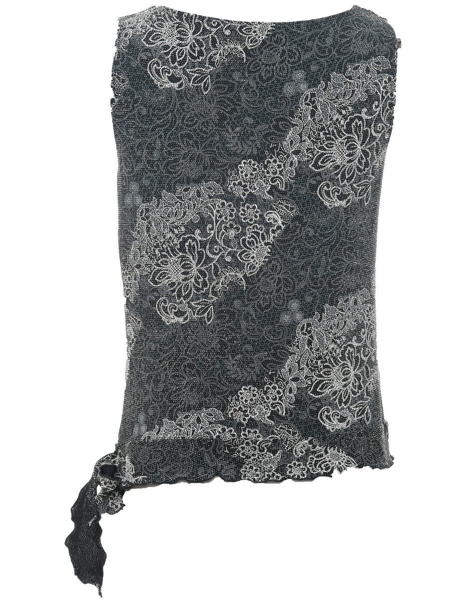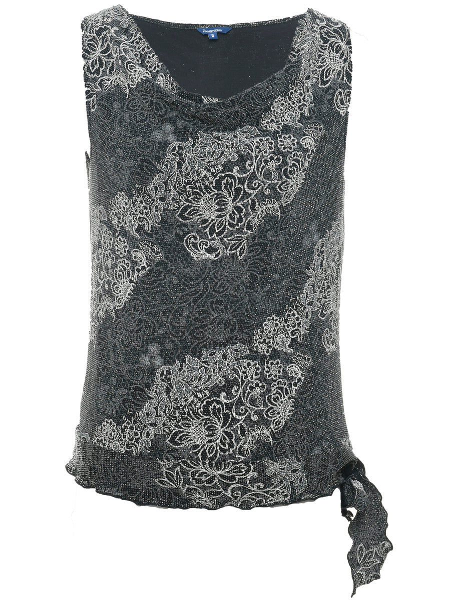 Floral evening top with metallic finish. Comes in black with tie detail and a cowl neck.