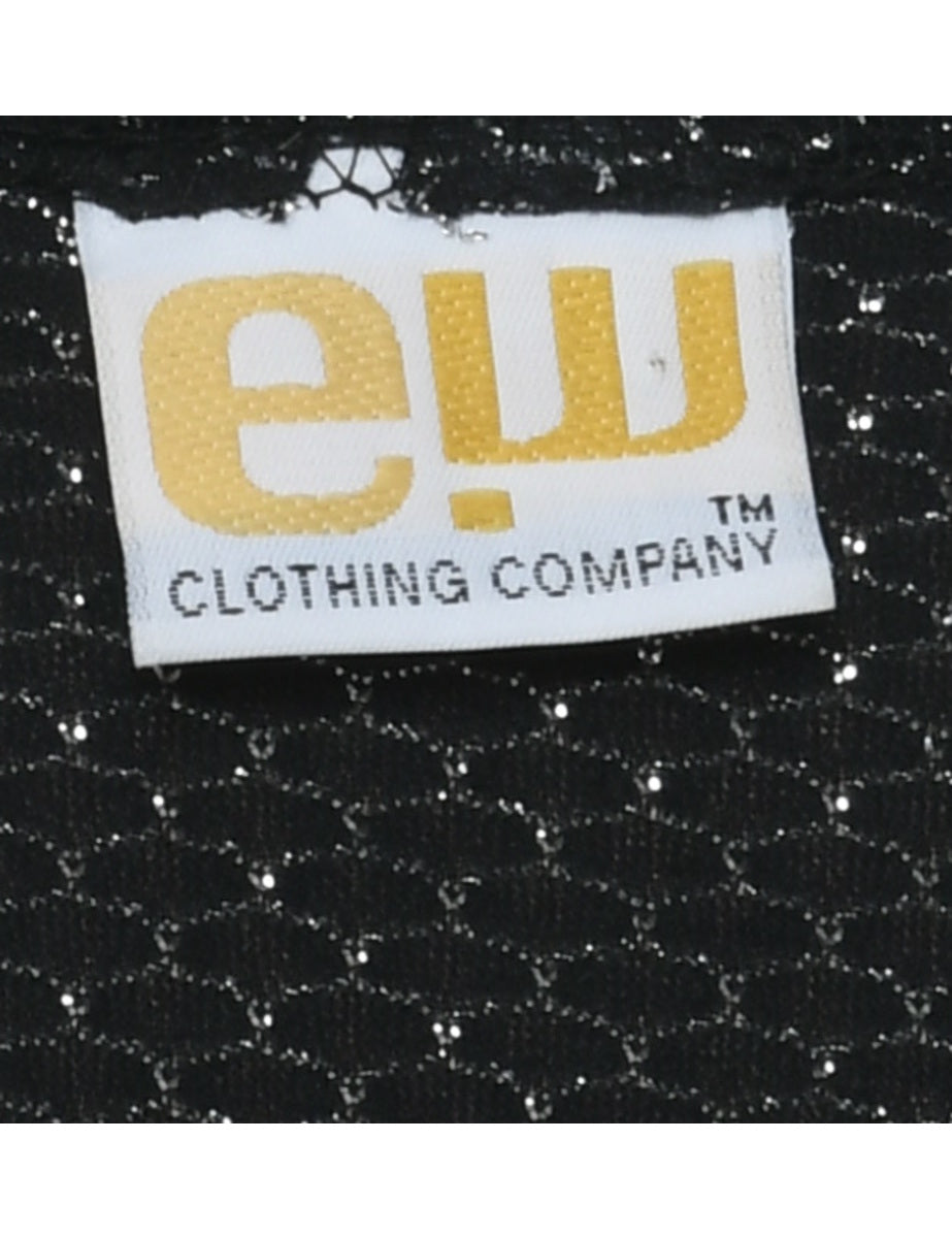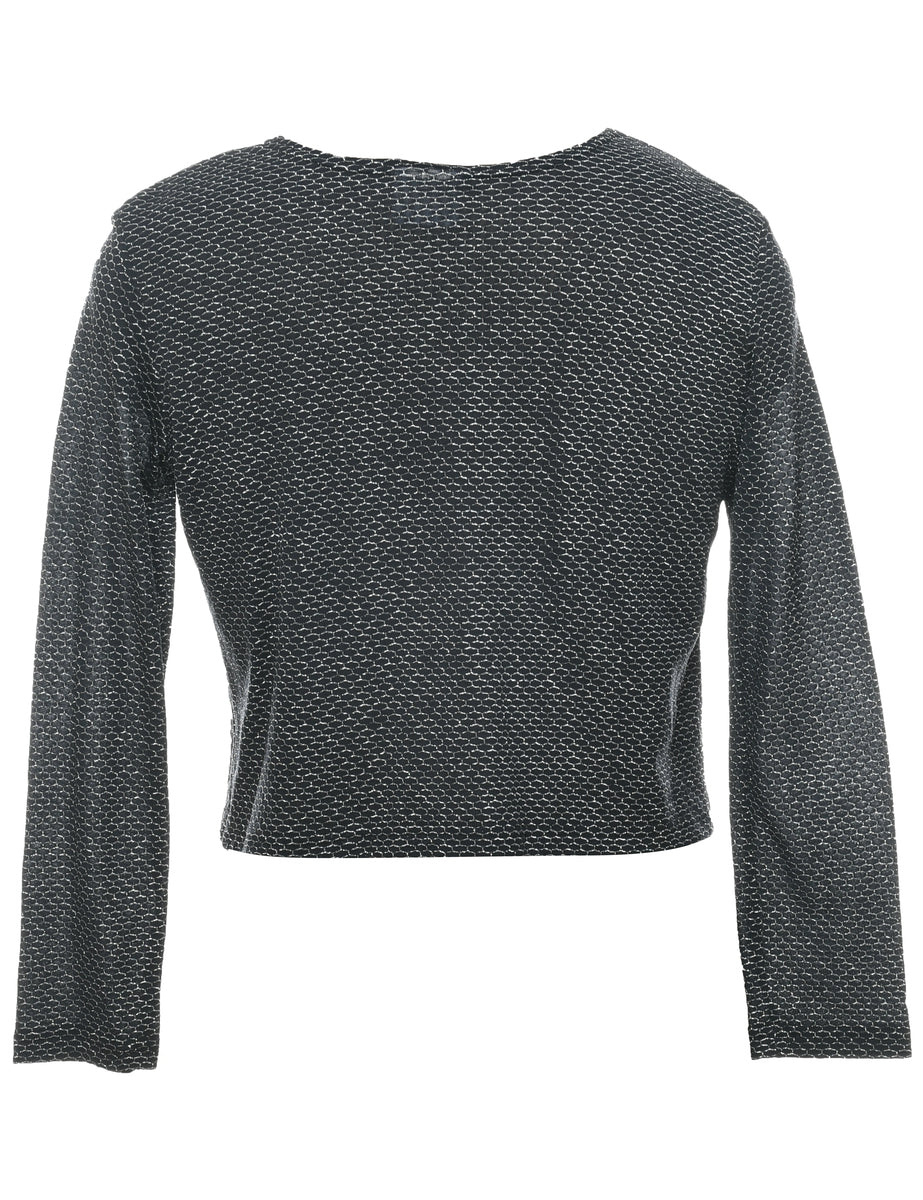 Lurex evening blouse with geometric print comes in black with a v-neck.