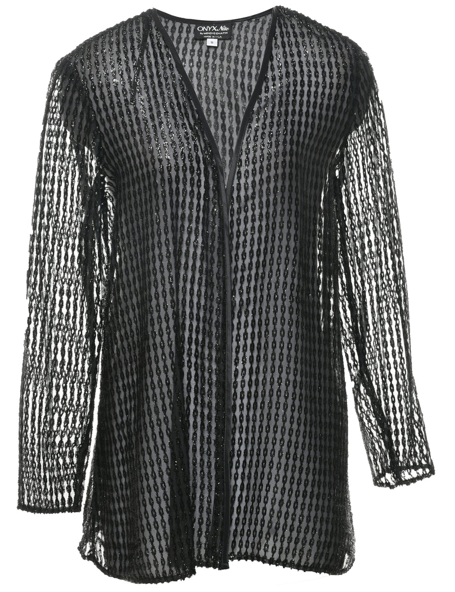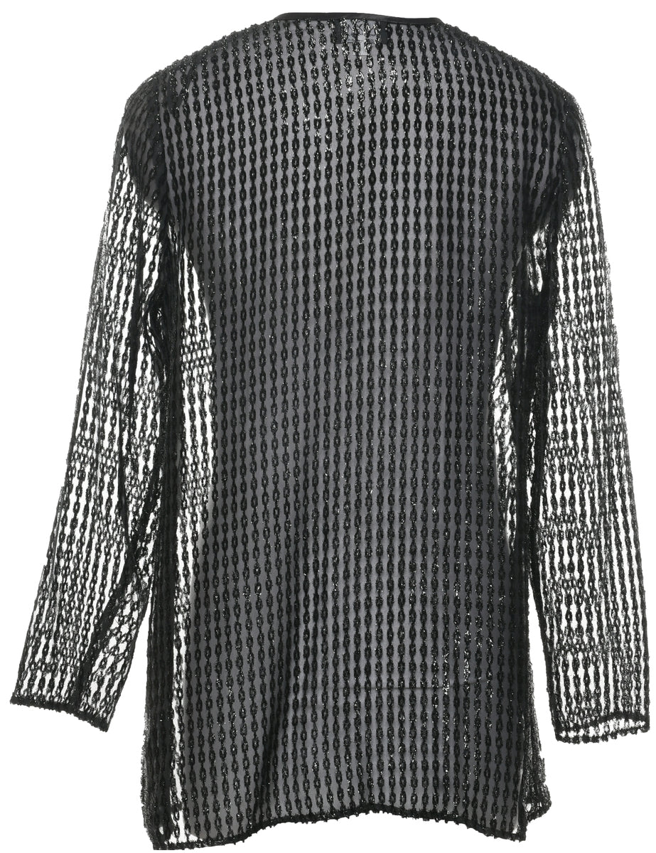 Lurex evening blouse with sheer effect. Comes in black with a v-neck.