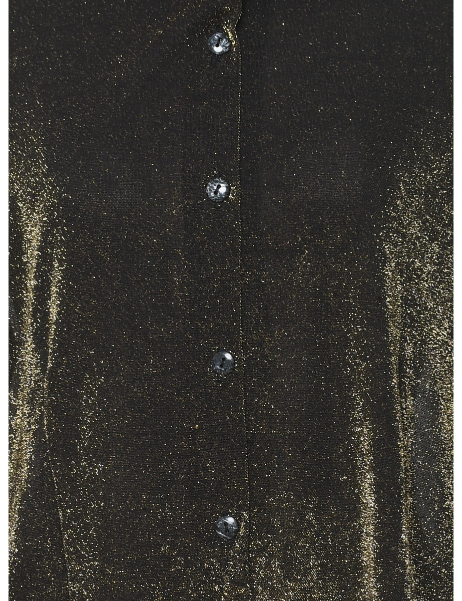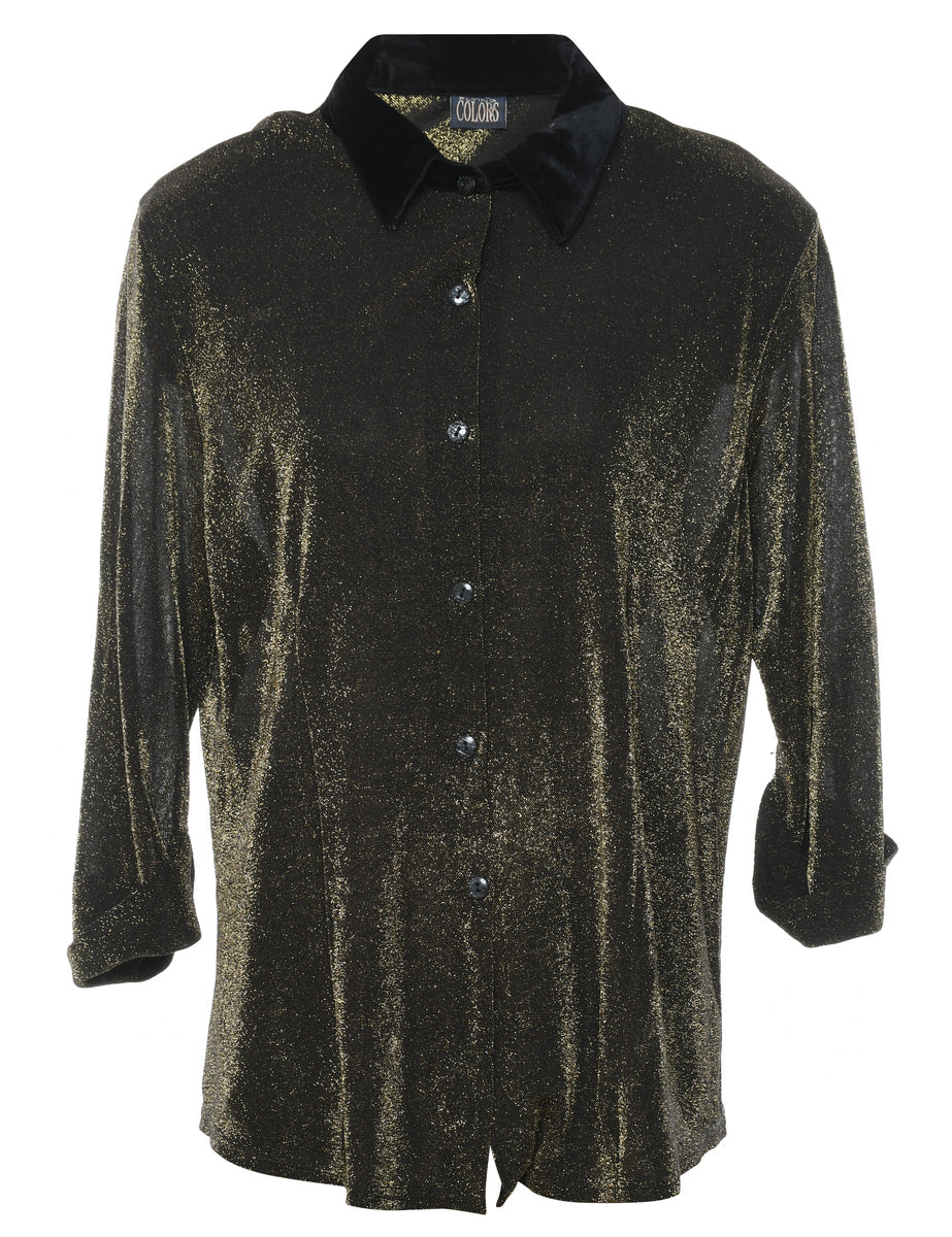 Metallic gold evening shirt complete with a contrast black velvet collar.