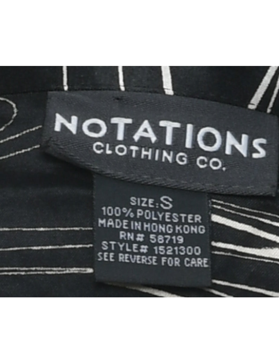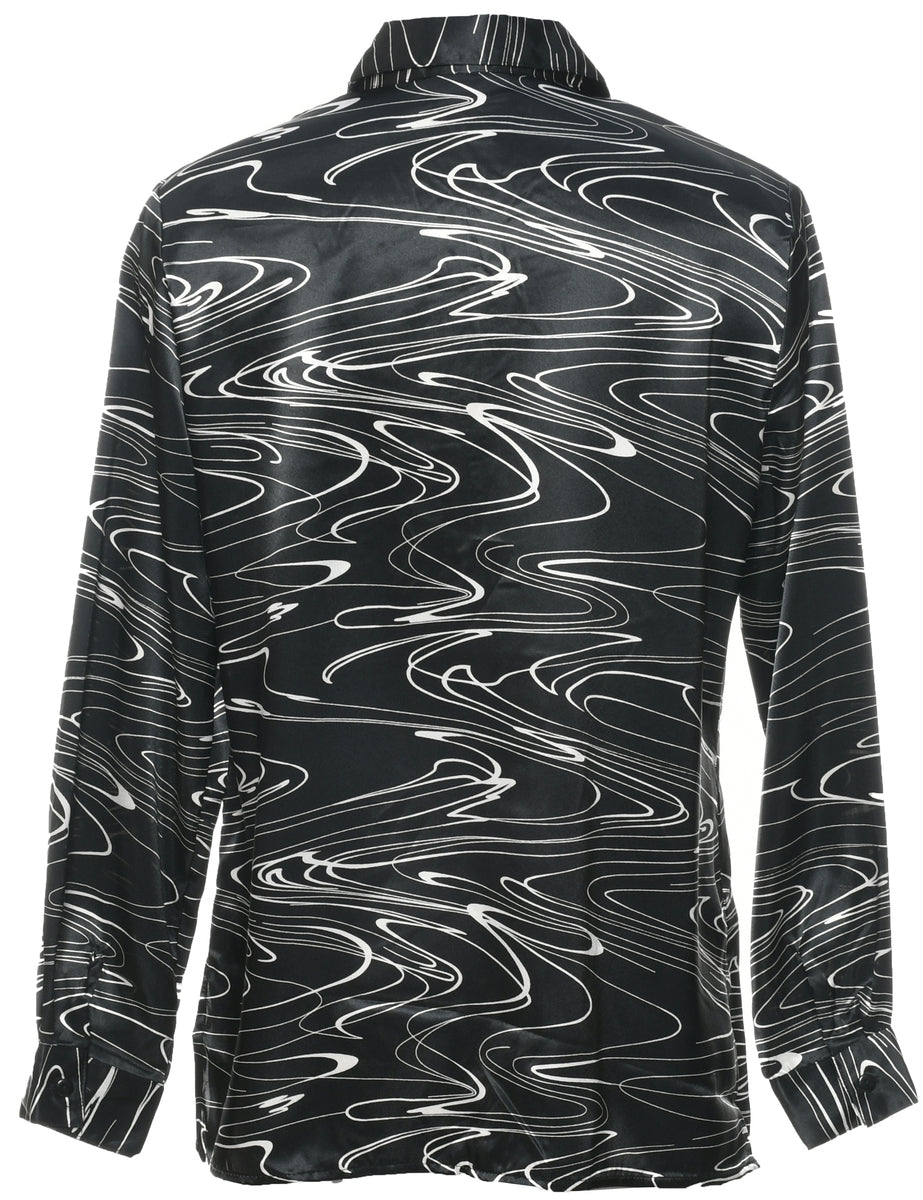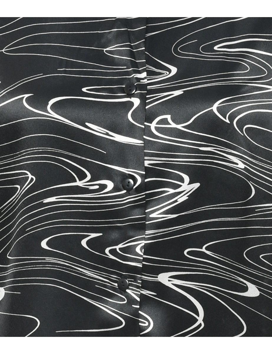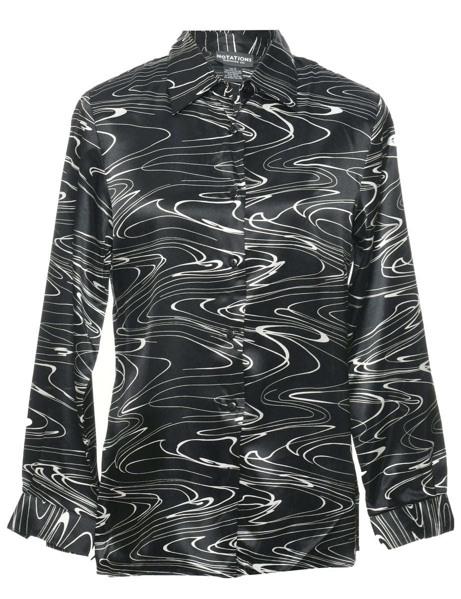 Long sleeved evening shirt with abstract print from Notations. Comes in black with removable shoulder pads and a classic collar.