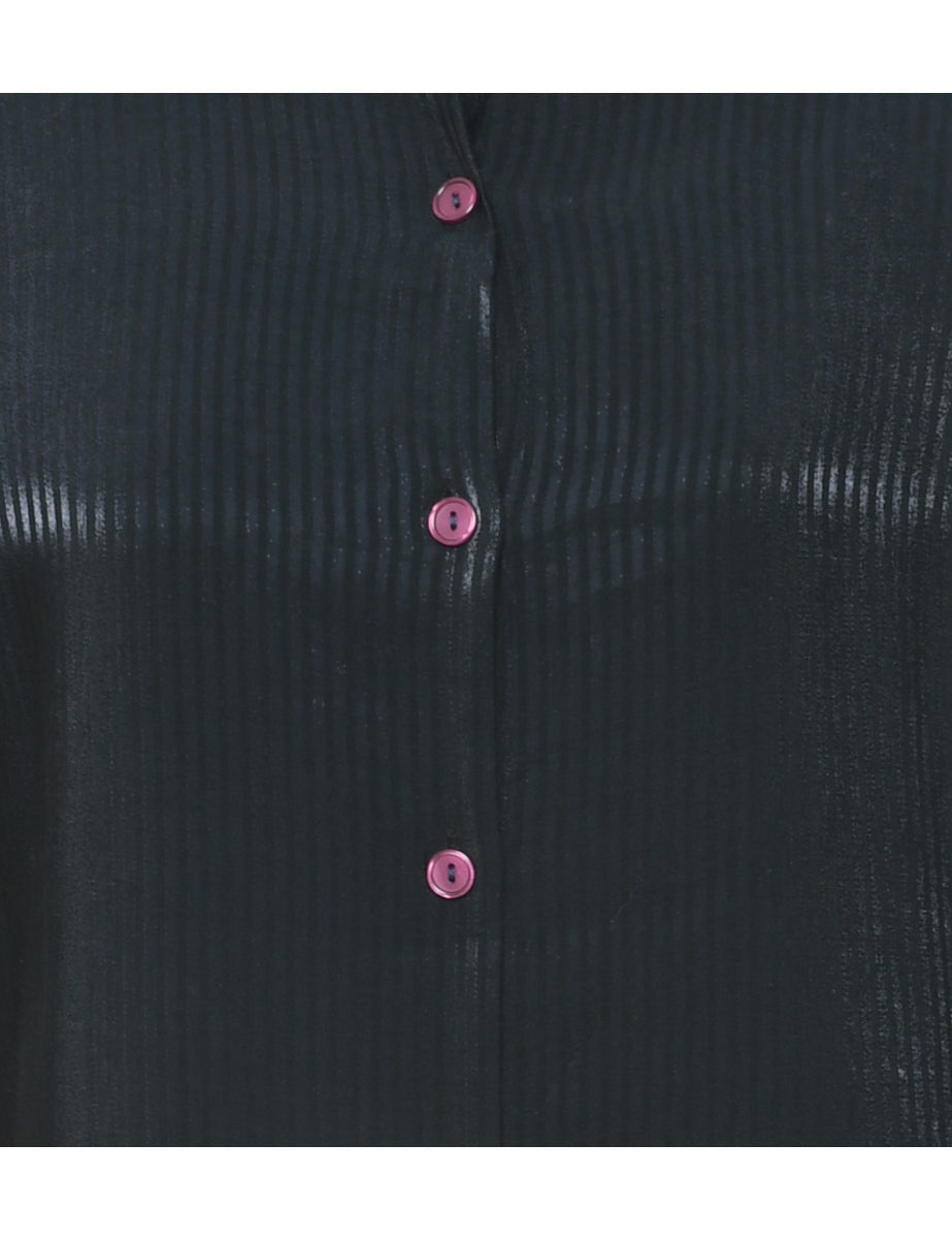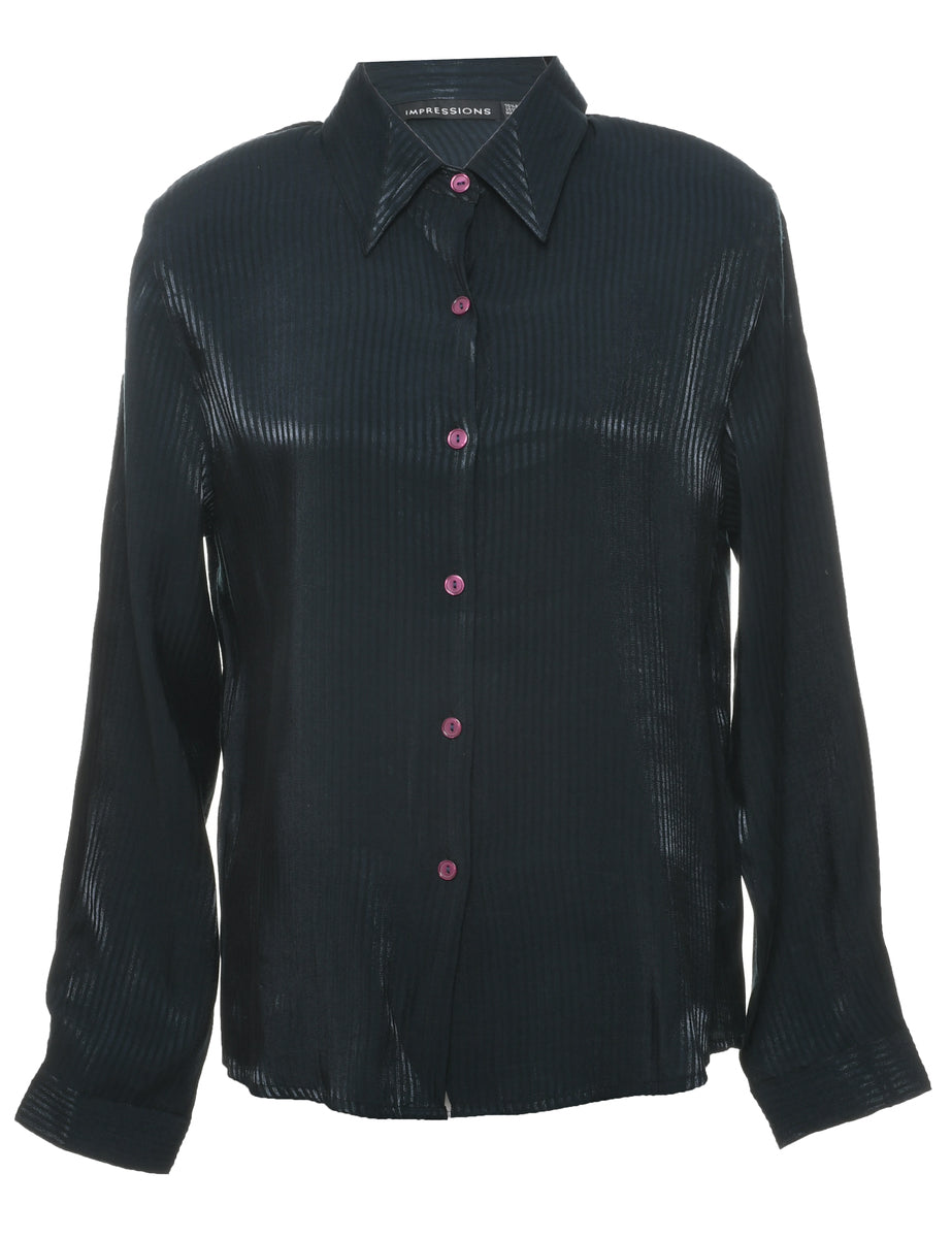 Long sleeved evening shirt with striped pattern. Comes in black with a classic collar and removable shoulder pads.