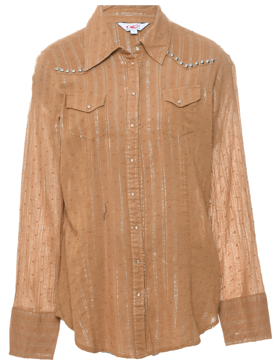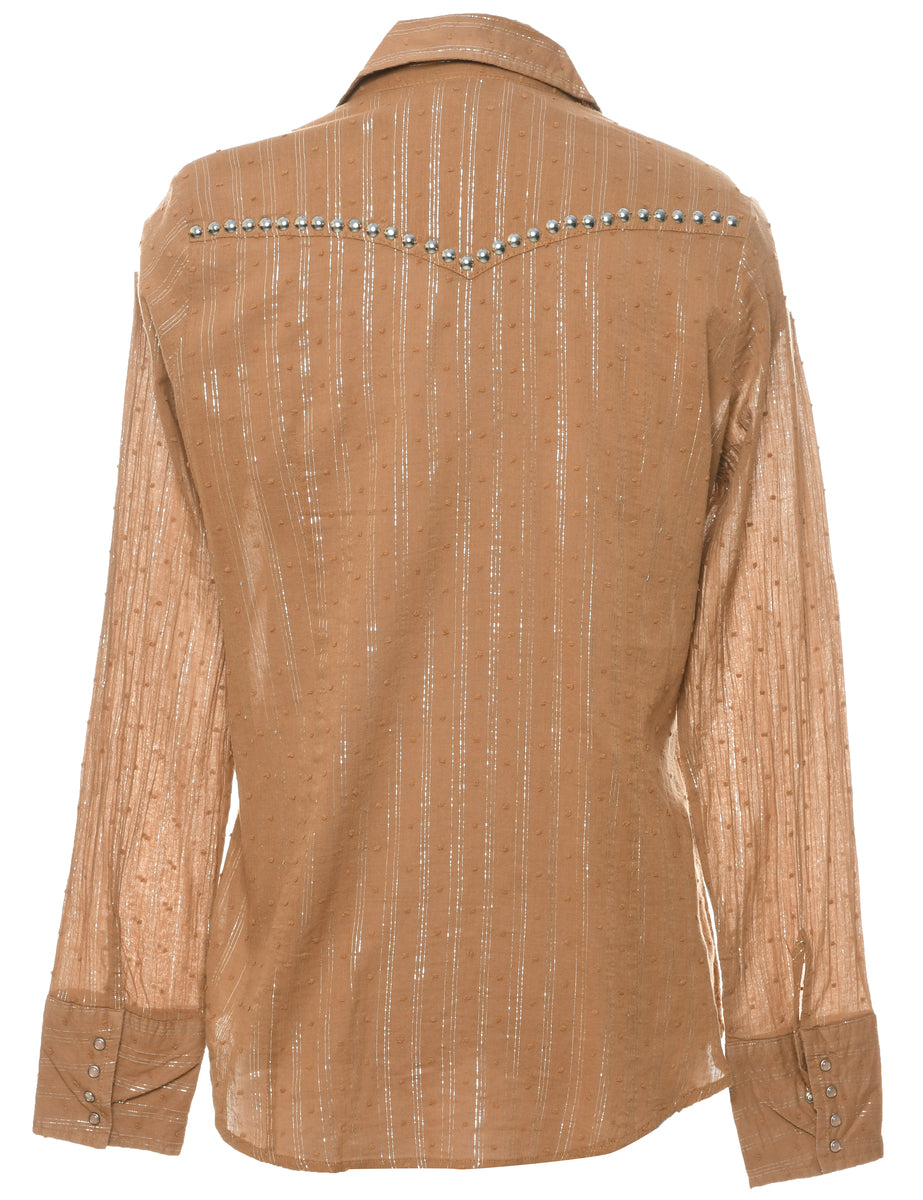 Lurex evening shirt with striped pattern. Comes in light brown with a classic collar and one pocket.