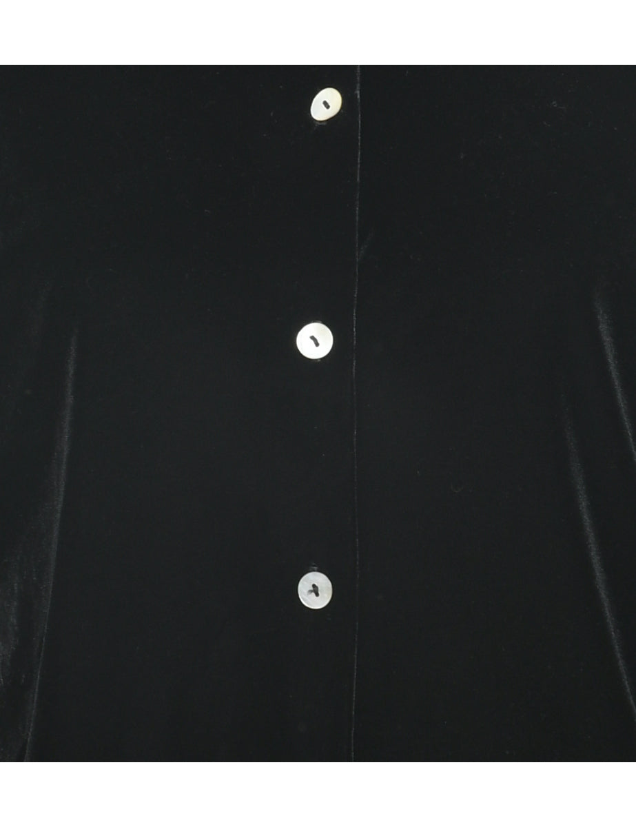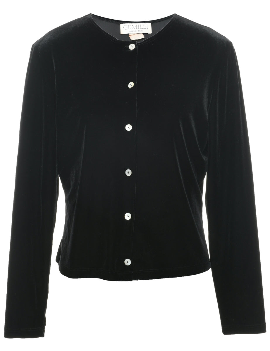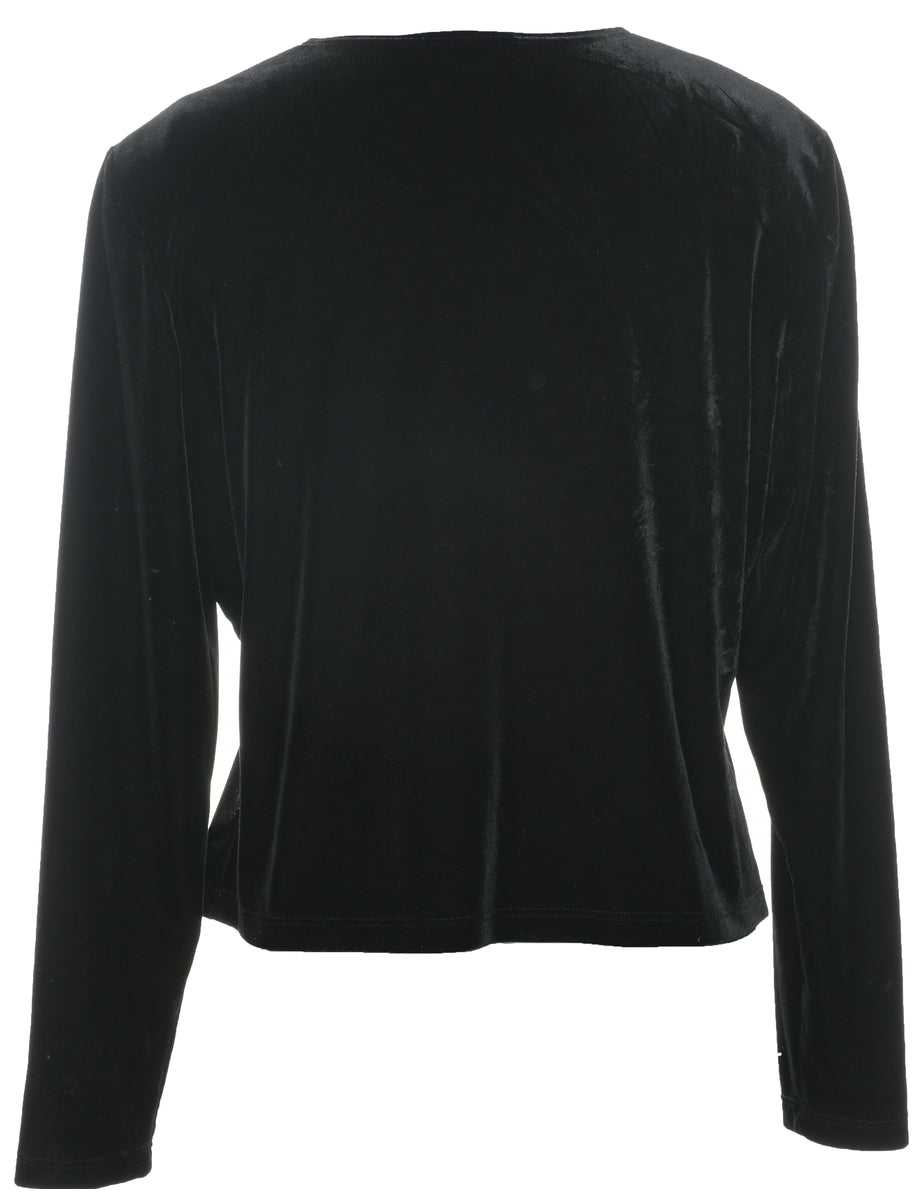 Long sleeved evening blouse with velvet fabric comes in black with a round neck.