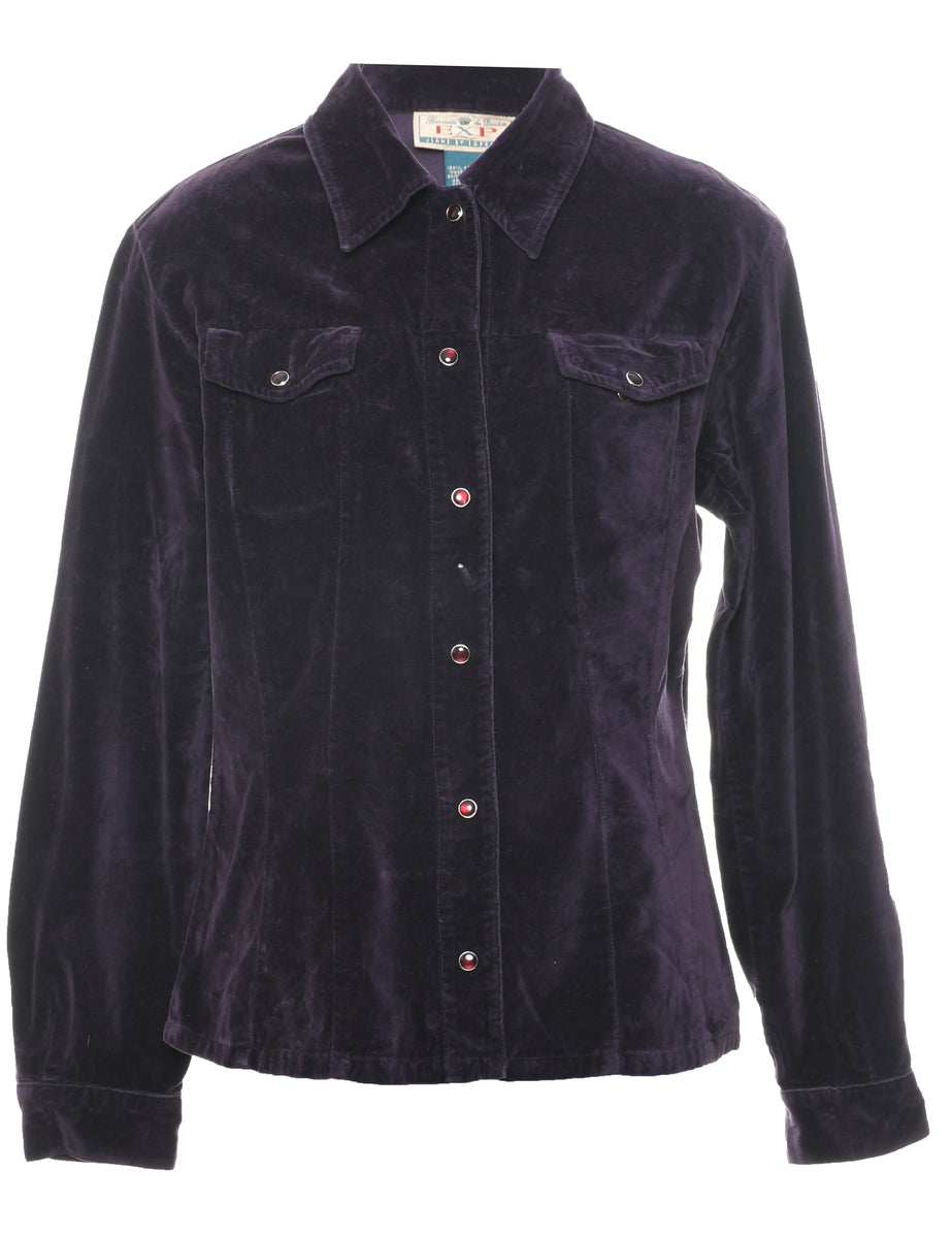 Long sleeved evening shirt with velvet fabric. Comes in plum with a classic collar and one pocket.