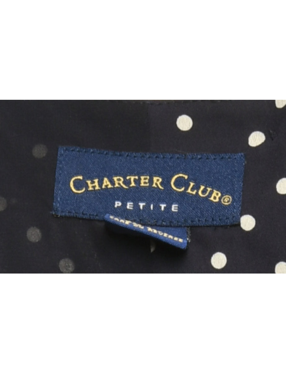 Vintage Button-Front Navy & White Polka Dot Print Vest - L