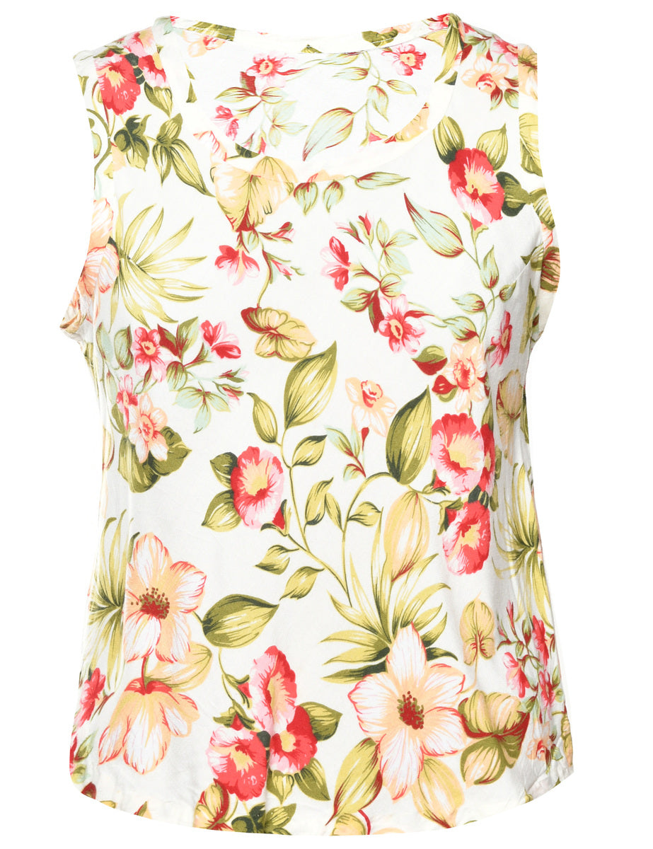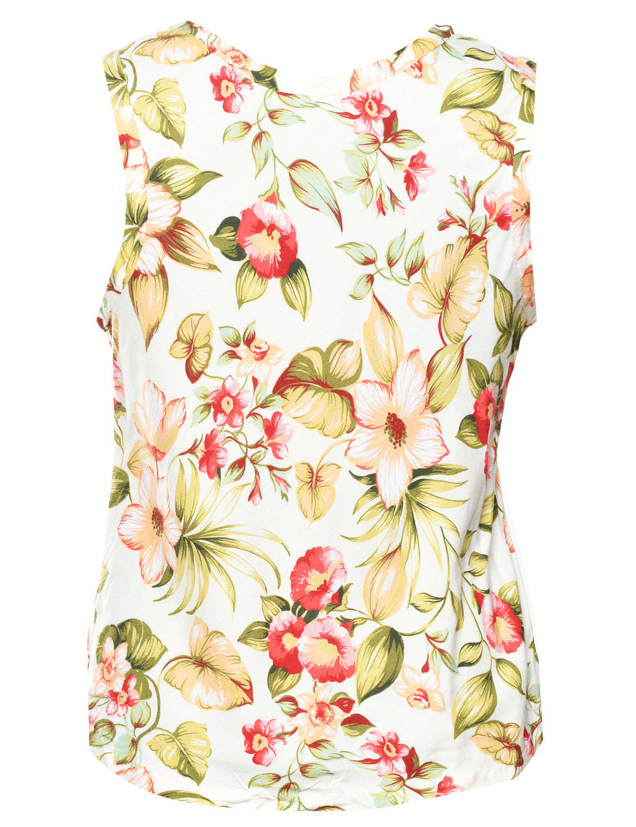Floral vest in multi-colour with a round neck.