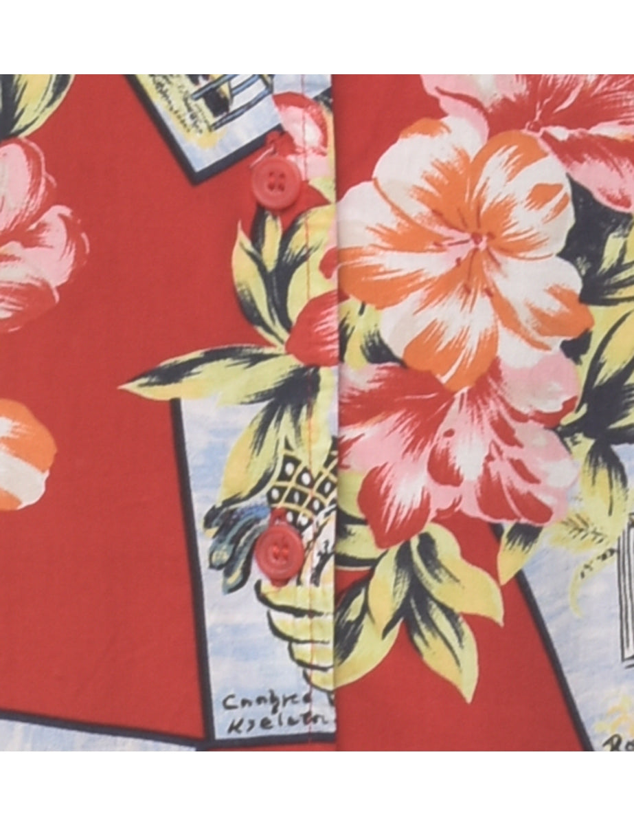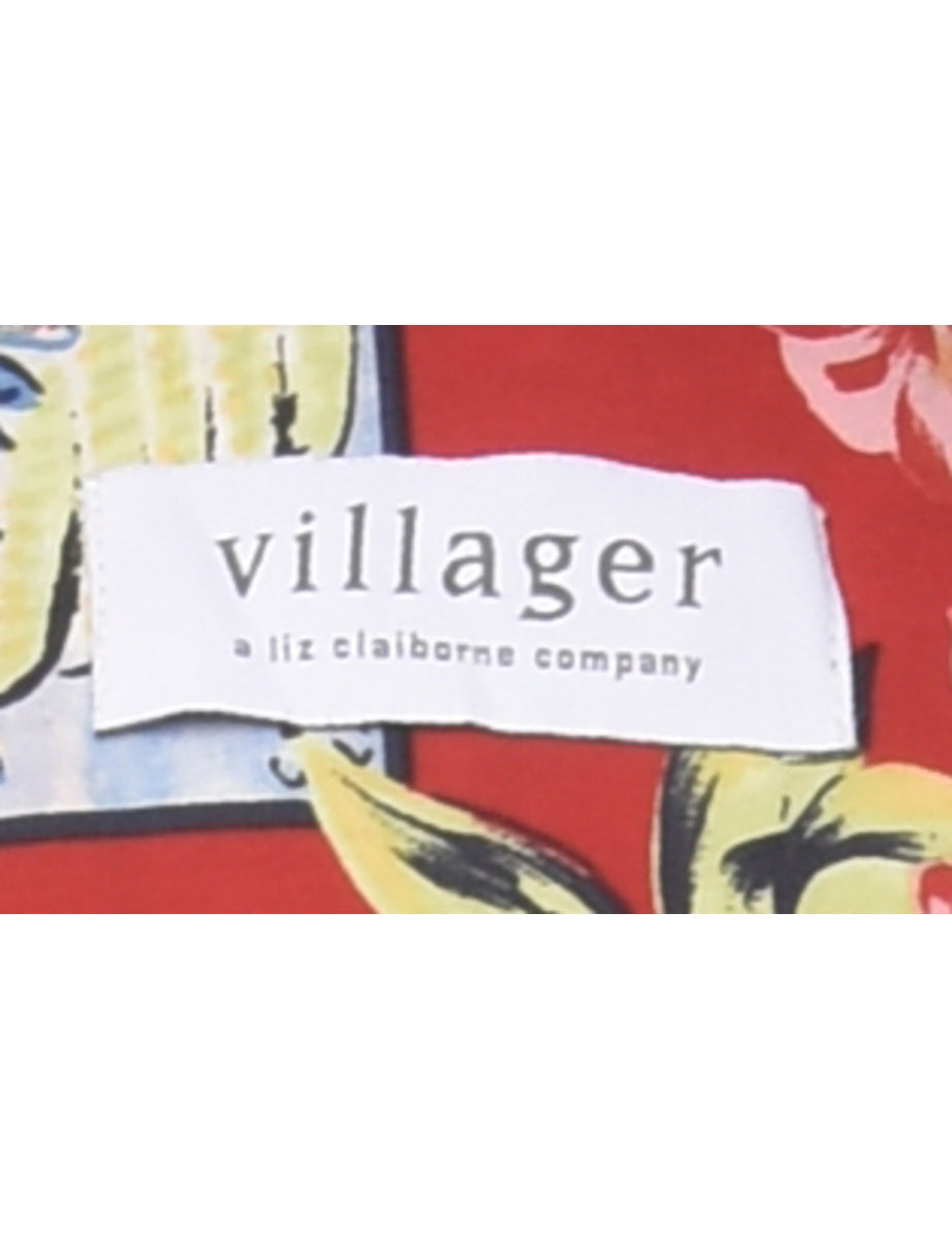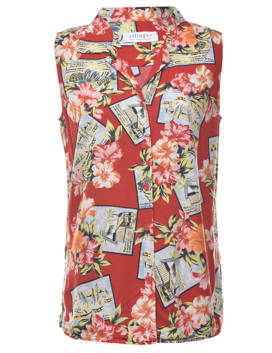 Novelty print vest in red with a revere front.