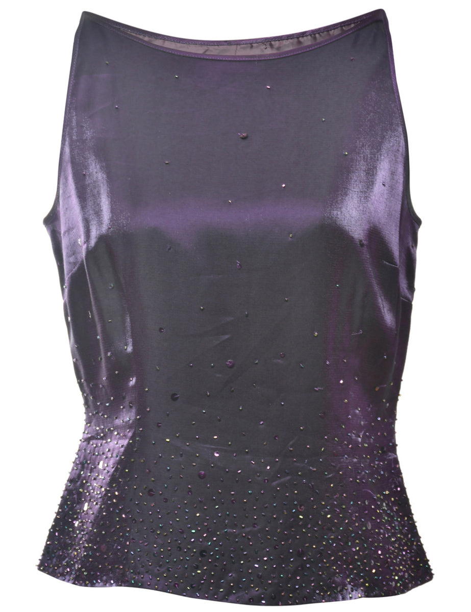 Beaded vest. Comes in purple with a boat neck and sequins.