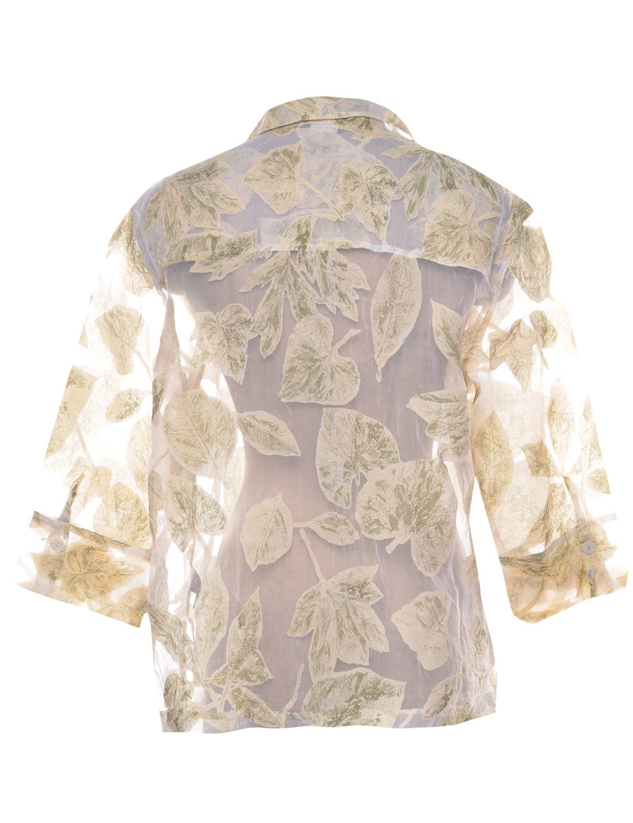 Foliage shirt with sheer effect. Comes in beige with a revere front.