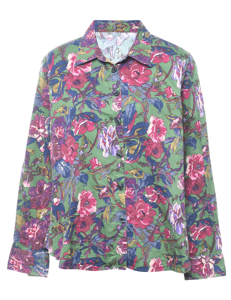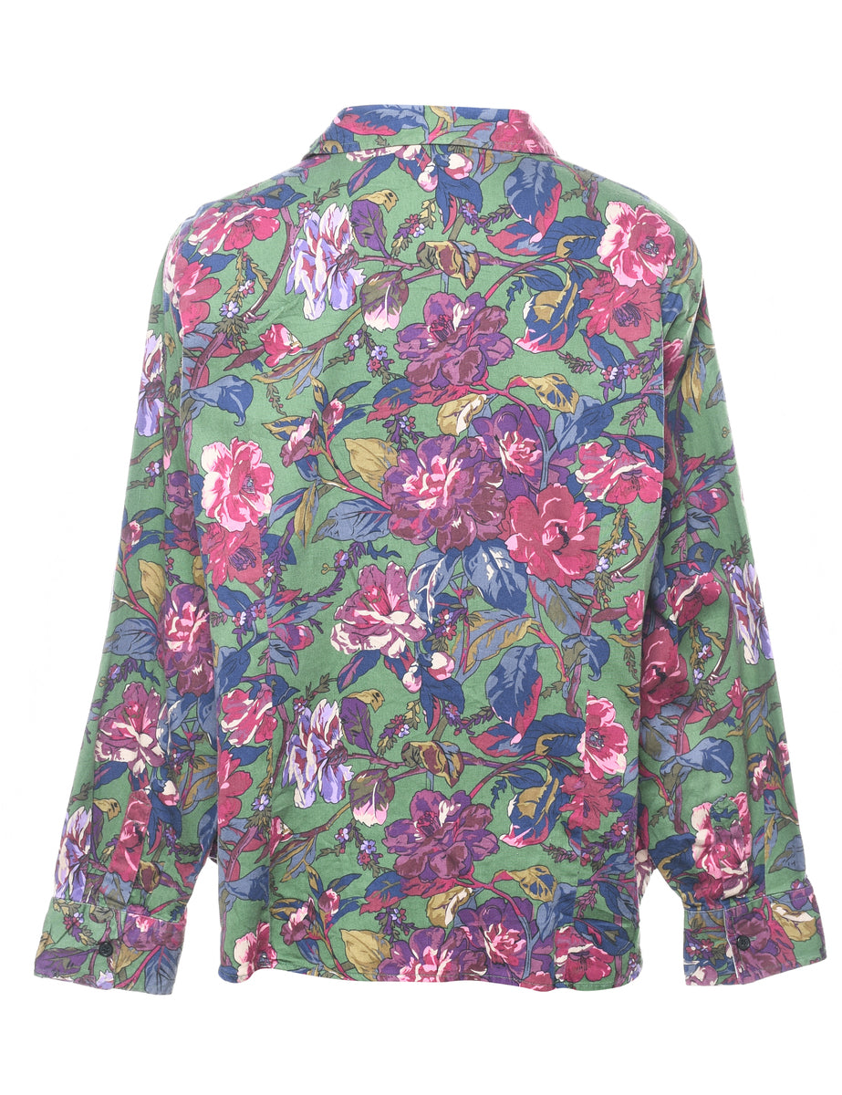 Vintage Green Floral Shirt - L