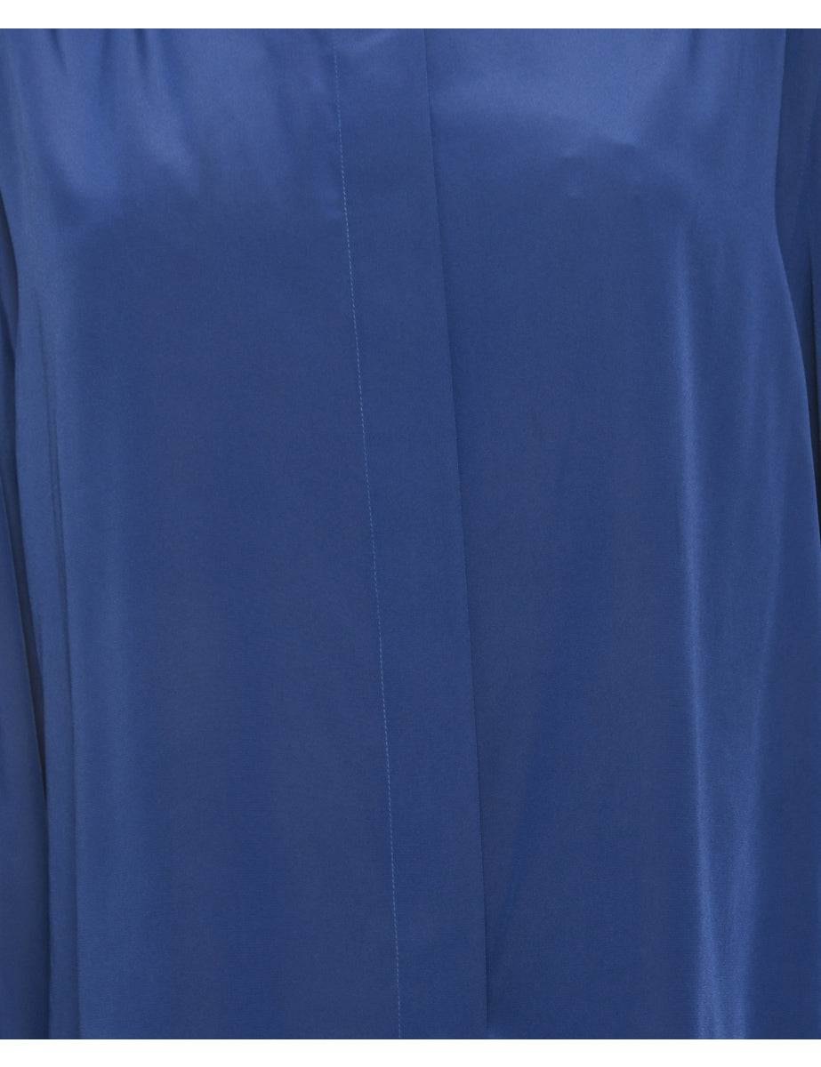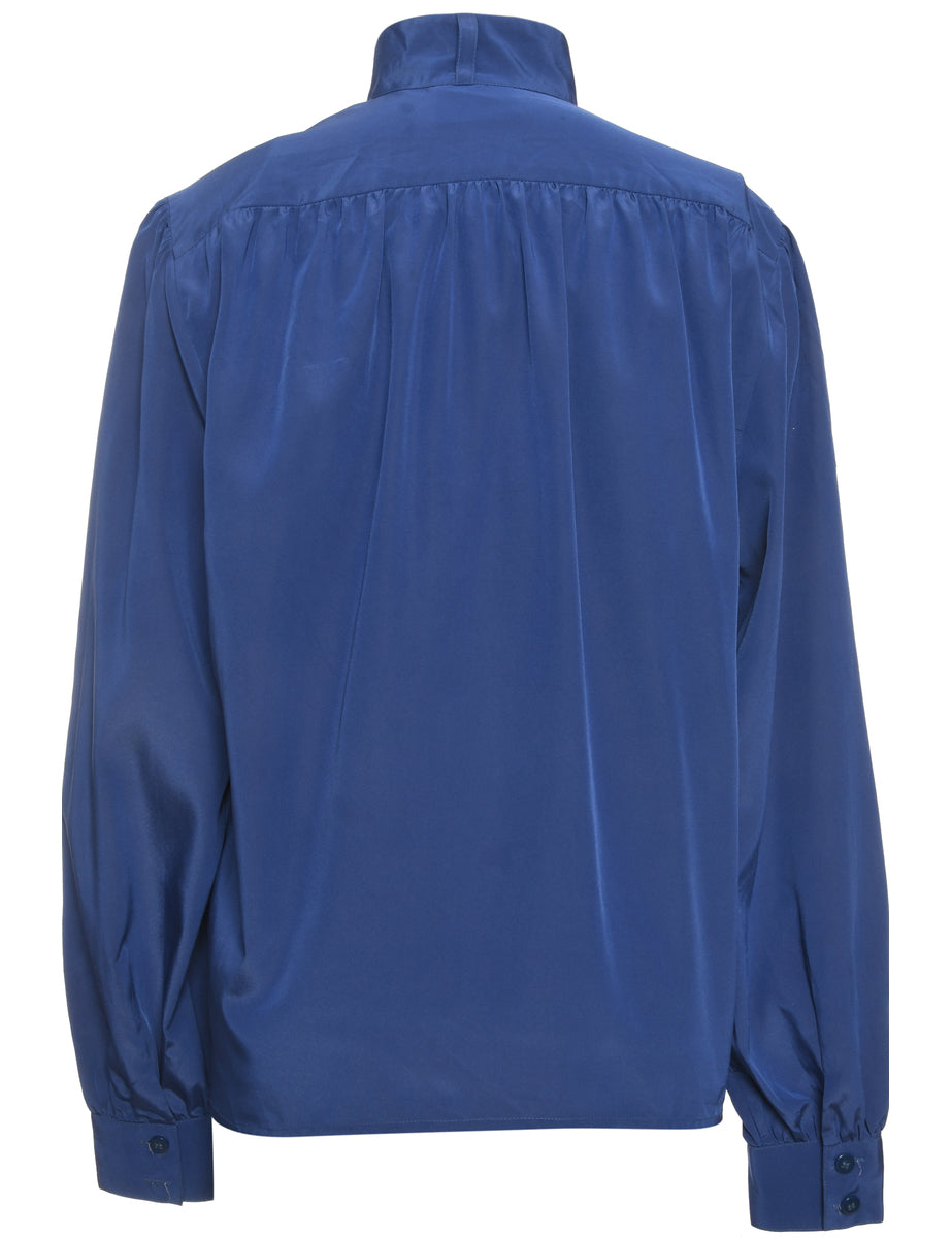 Long sleeved navy blouse with pleat detail and built in shoulder pads.