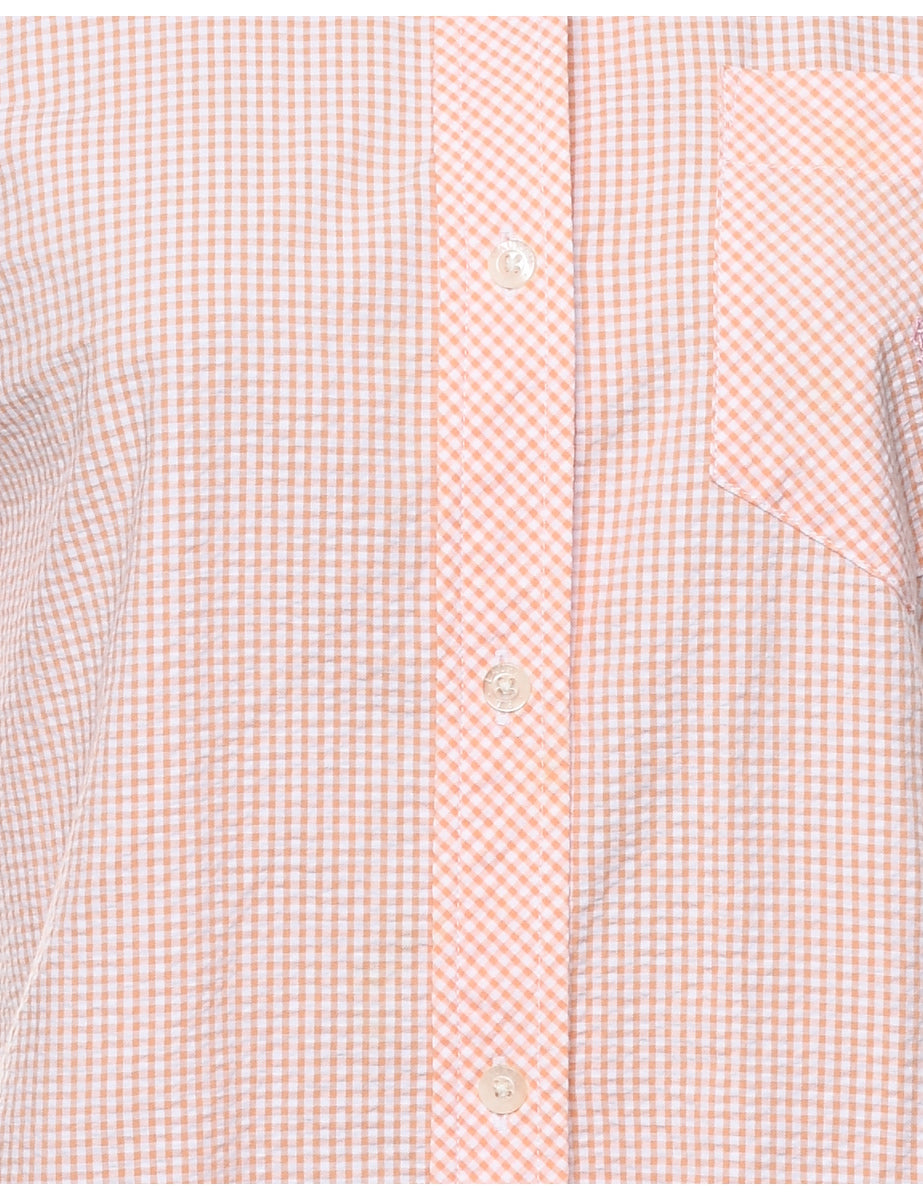 Short sleeve shirt with gingham pattern from Ralph Lauren. Comes in peach with a classic collar.